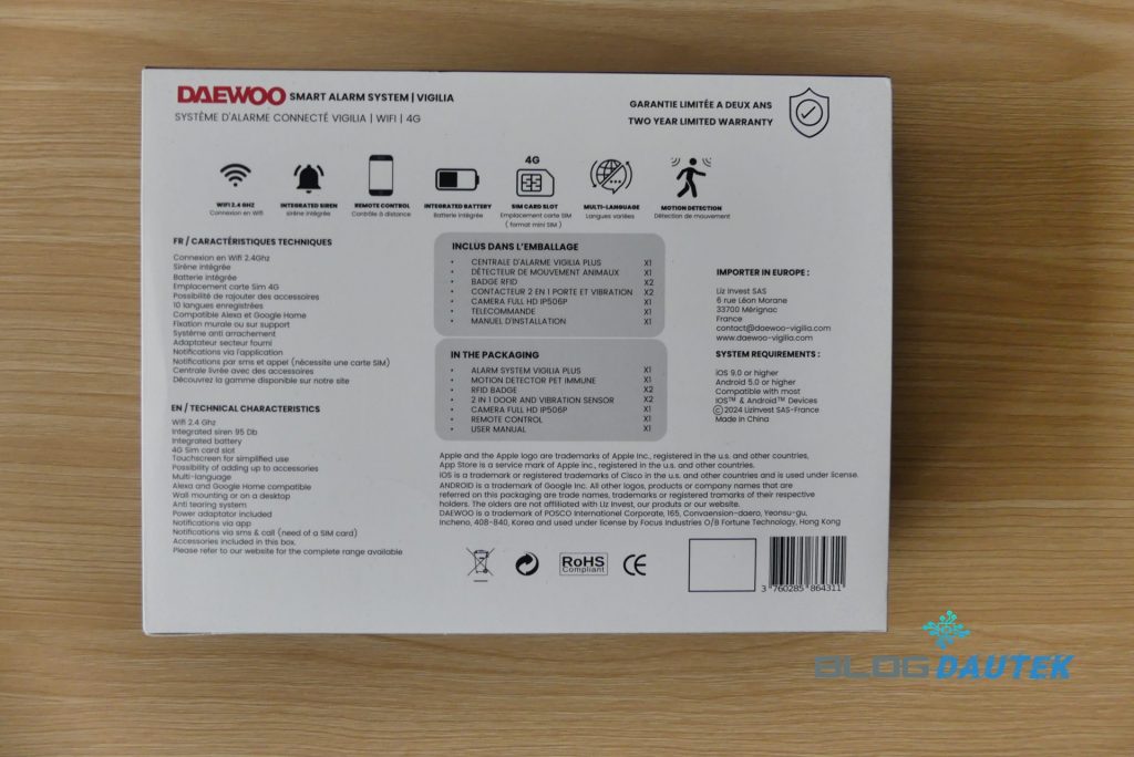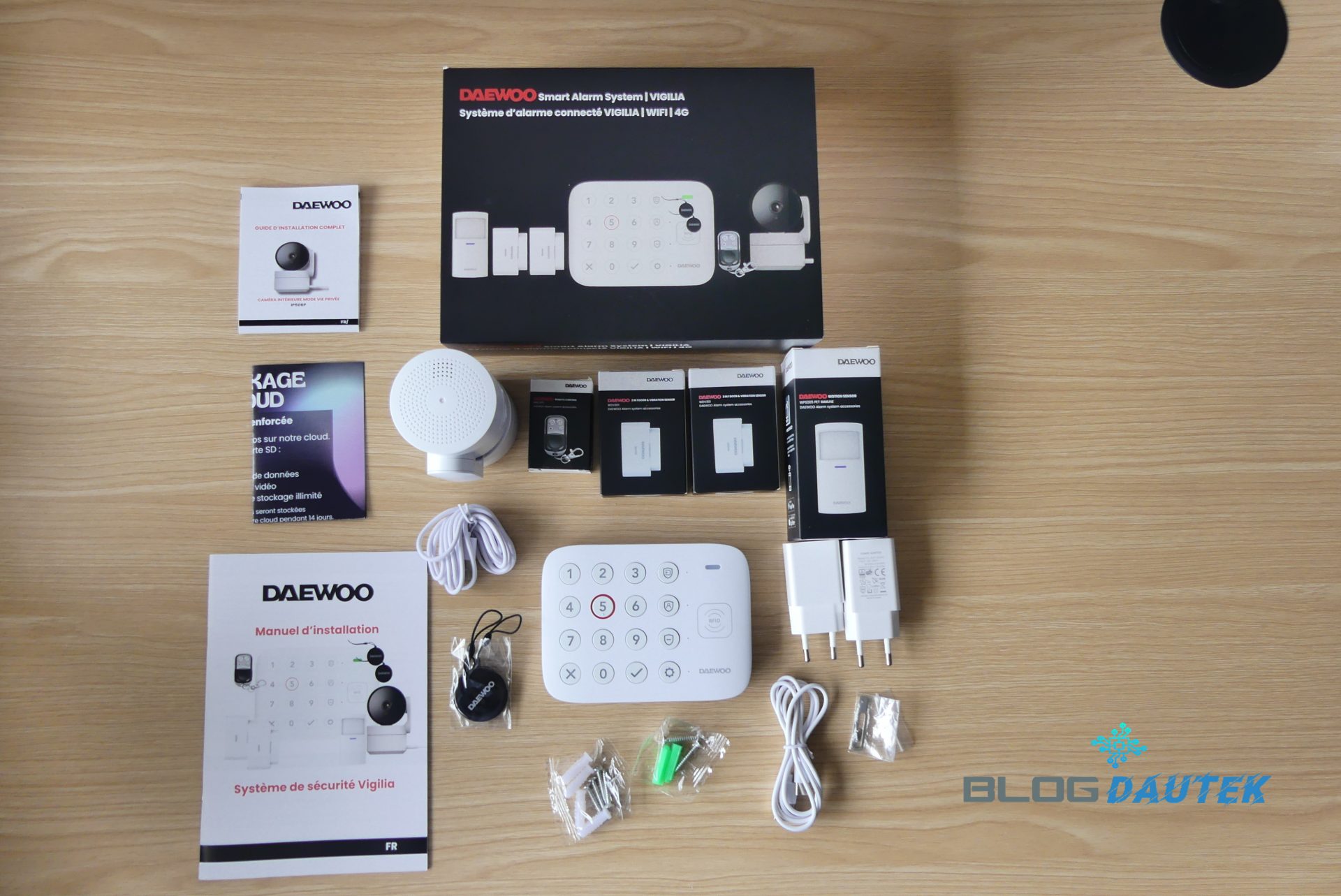 À l’ouverture du packaging de l’alarme Daewoo Vigilia, on découvre un kit complet et bien pensé.