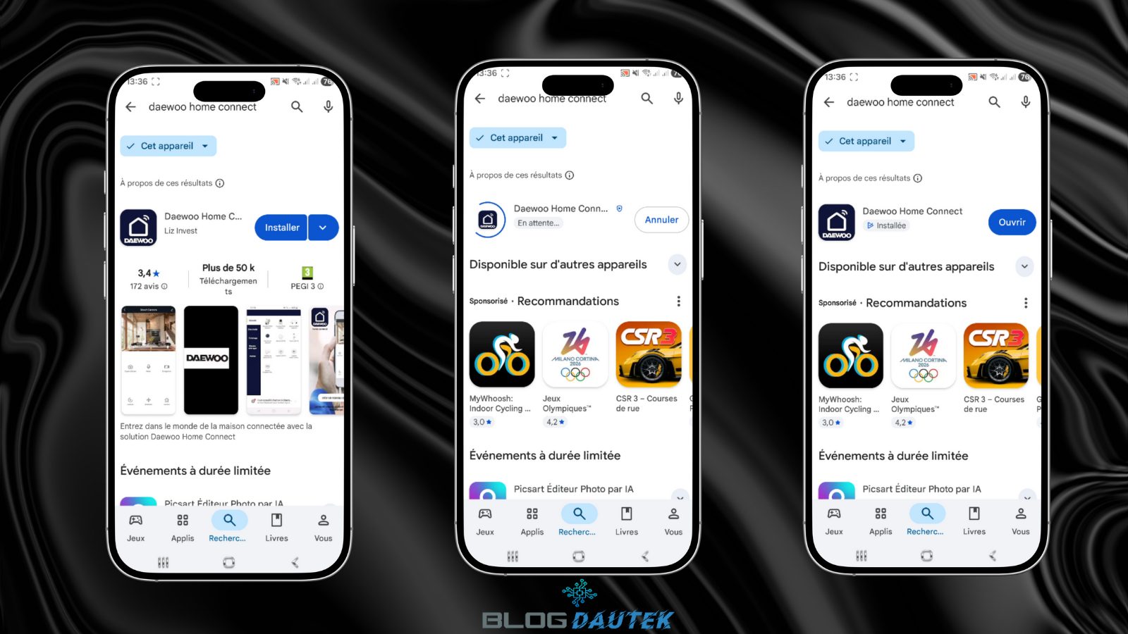 Commençons par télécharger et installer l’application Daewoo Home Connect et ouvrez là.
