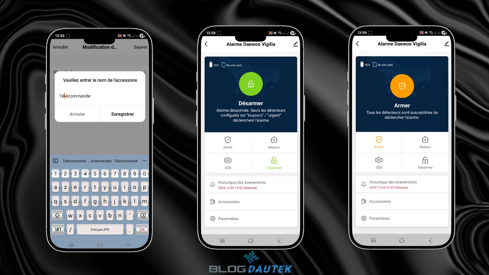 Enfin, donnez lui un nom et appuyer directement sur les touches pour désarmer ou armer.