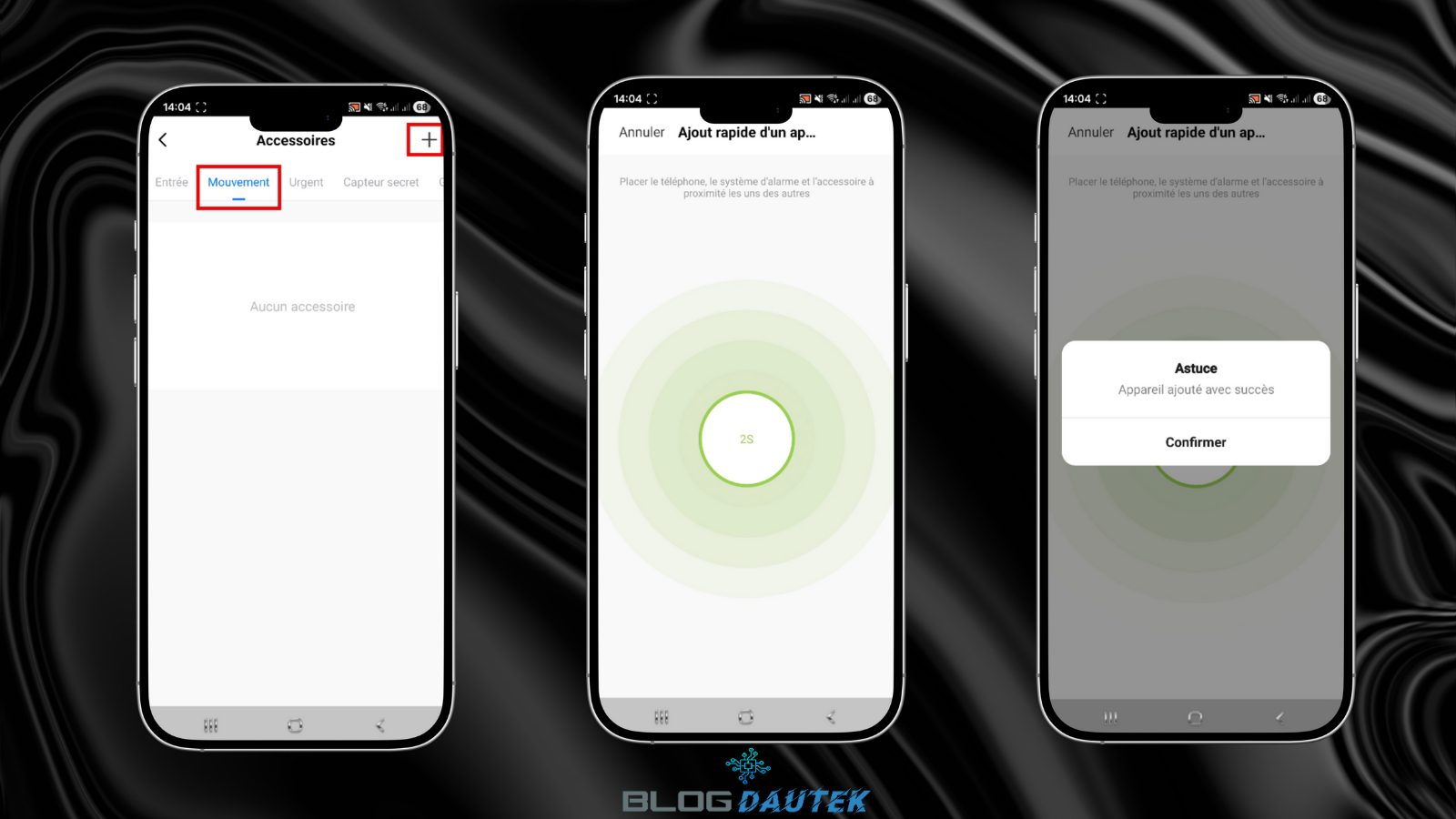 Comme pour la télécommande, il faut allez sur les accessoires de la centrale puis sur mouvement puis sur +. Allumez le bouton et la détection commence, cliquez sur Confirmer.