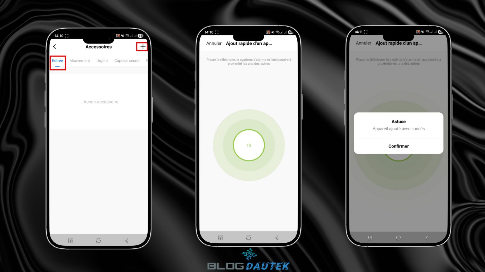 Commençons par la centrale, car c’est avec elle qu’il faudra intégrer tous les périphériques fournis à part la caméra. Cliquez sur le + puis sur Ajouter un appareil et sur Continuez.