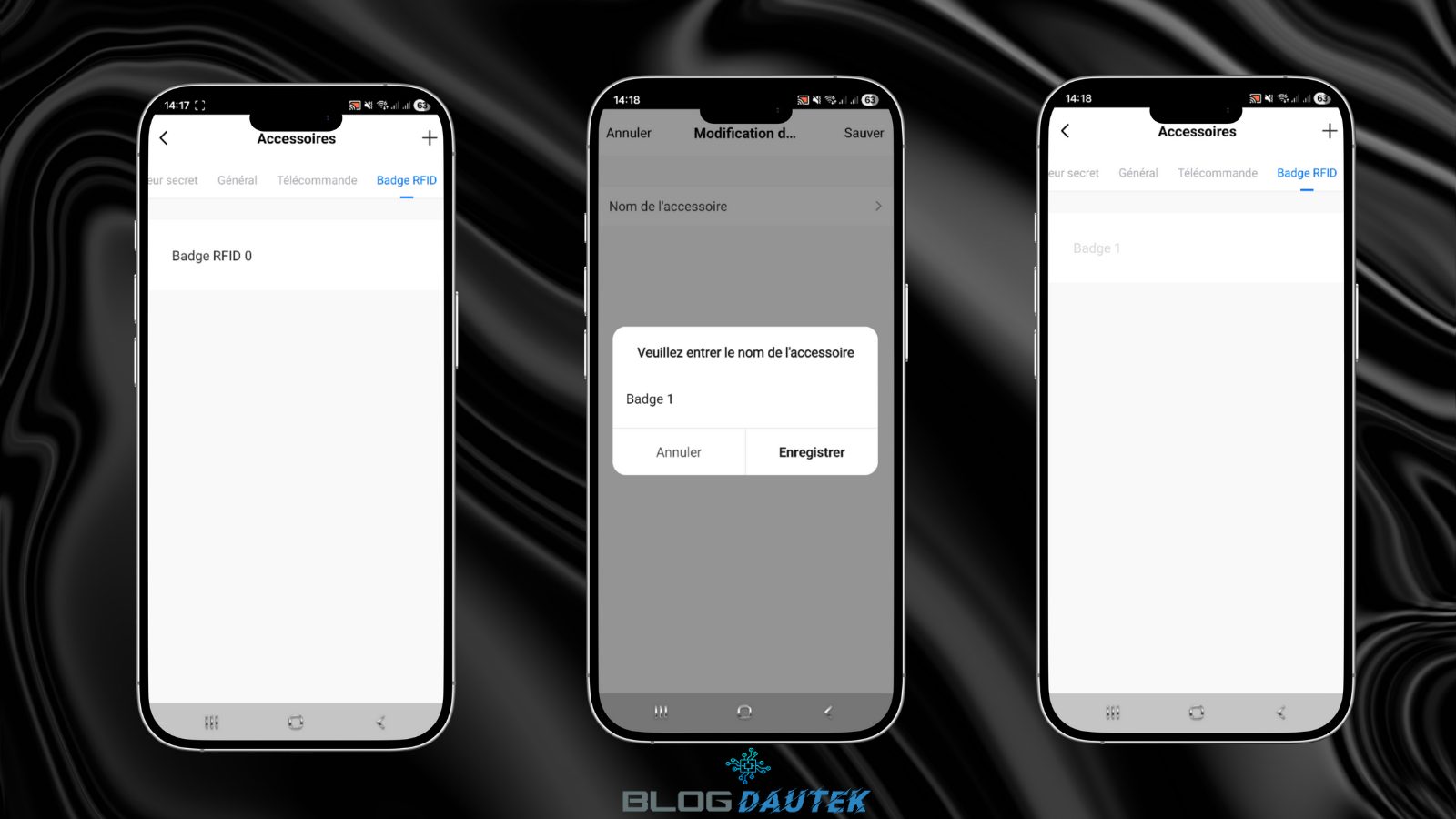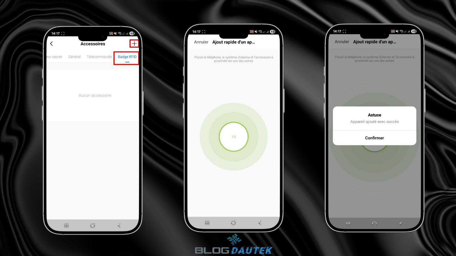 Enfin, pour les badges RFID il faut se mettre sur son onglet et pendant la recherche passer le badge sur la centrale.