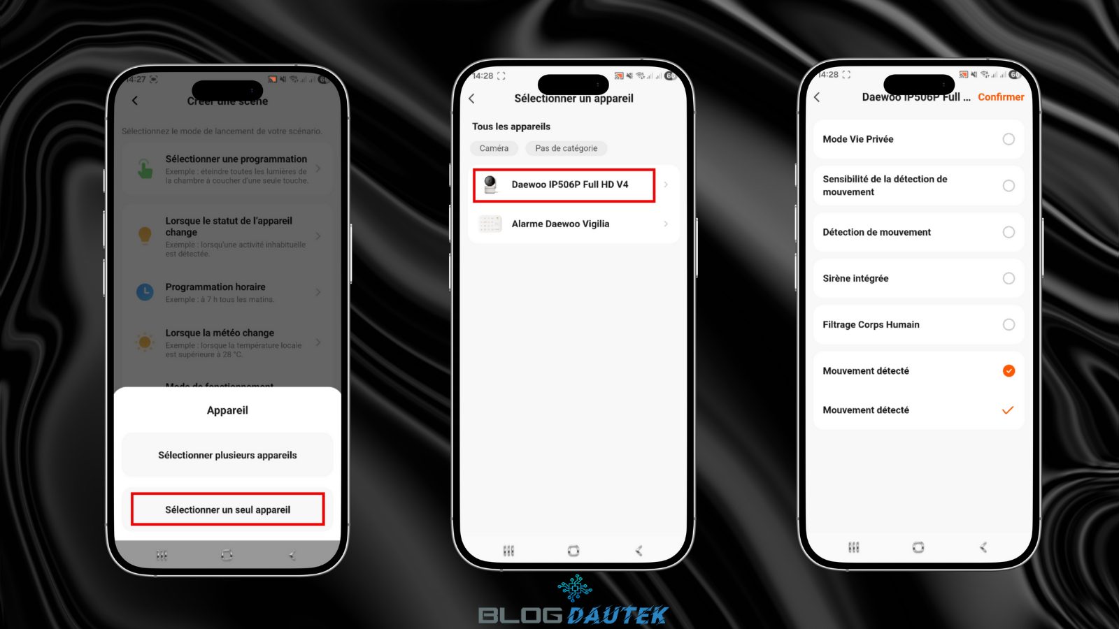Maintenant, cliquez sur Sélectionnez un seul appareil puis cliquez sur la caméra et sélectionnez mouvement détecté et Confirmer.