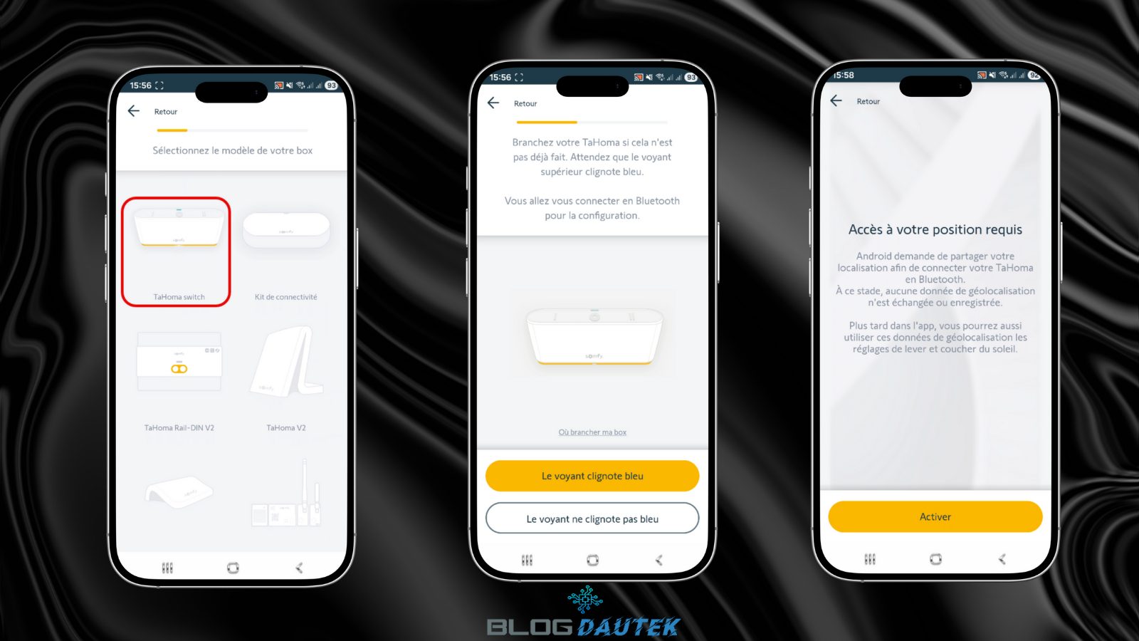 Maintenant, cliquez sur la box Tahoma Switch et cliquez sur le voyant clignote bleu après l’avoir branché. Pour la position, cliquez sur Activer.