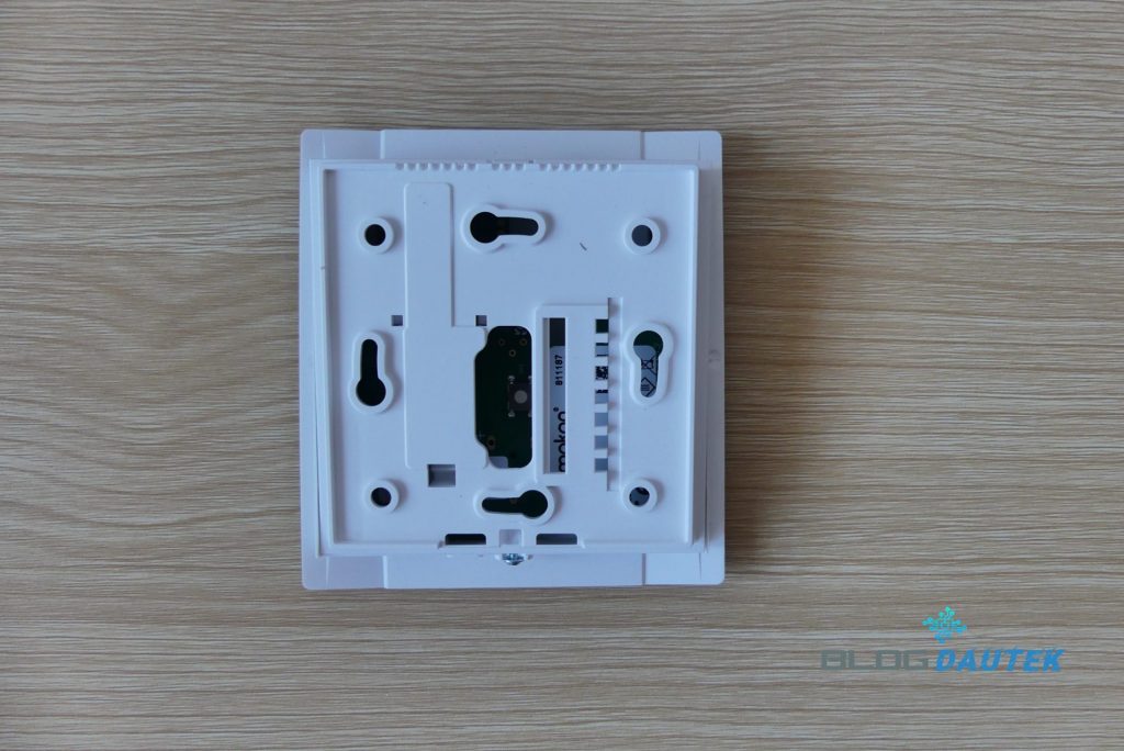 Vue arrière du socle de fixation, qui peut également être fixé sur une boite de cloison.