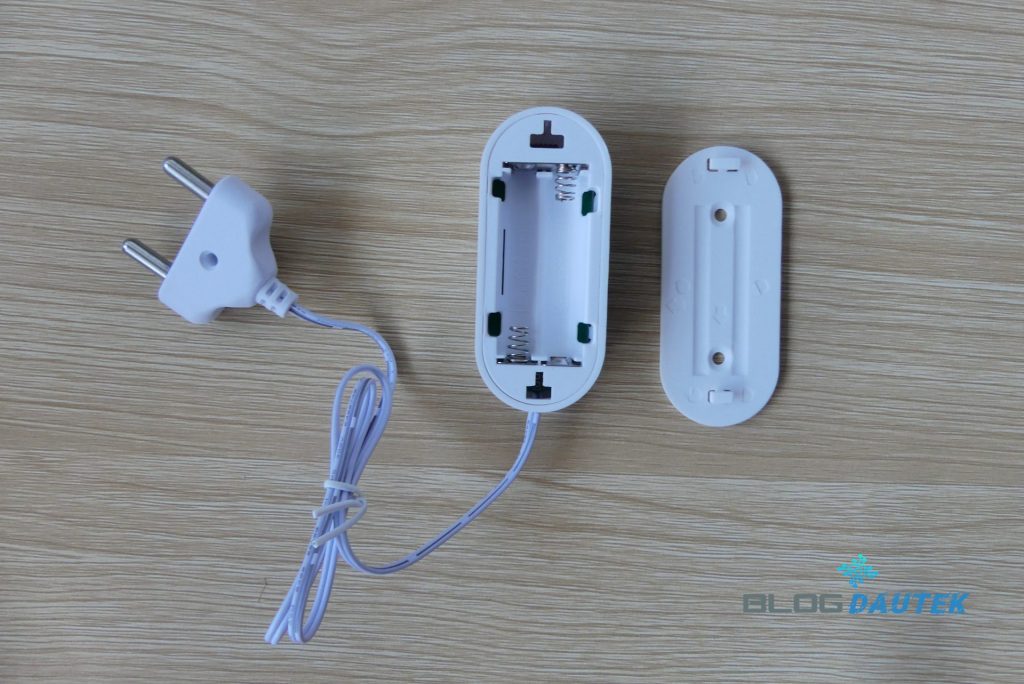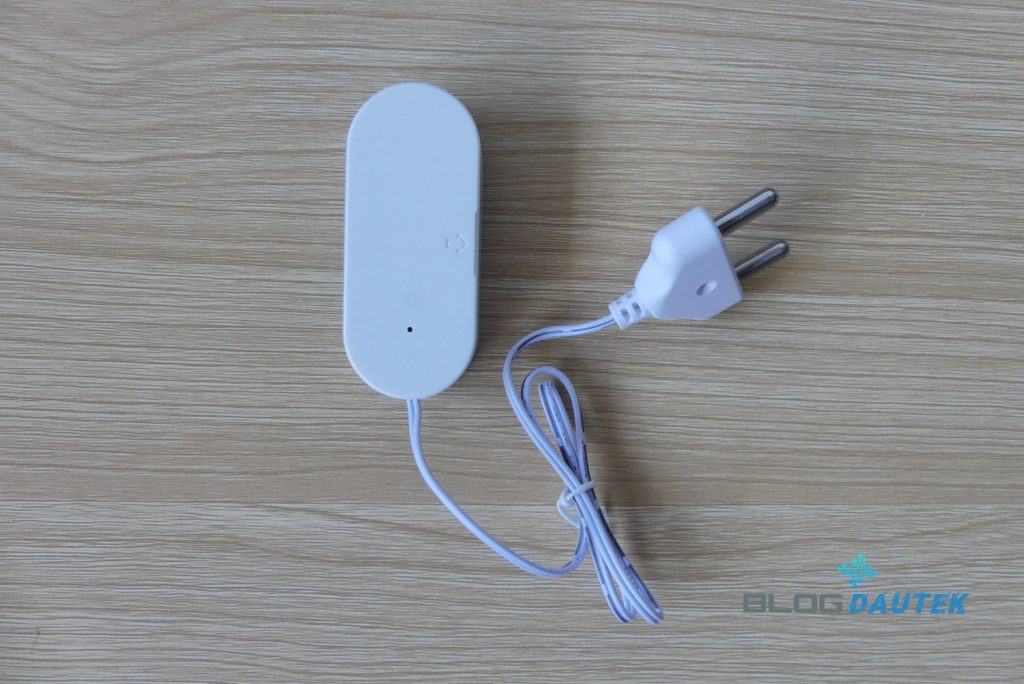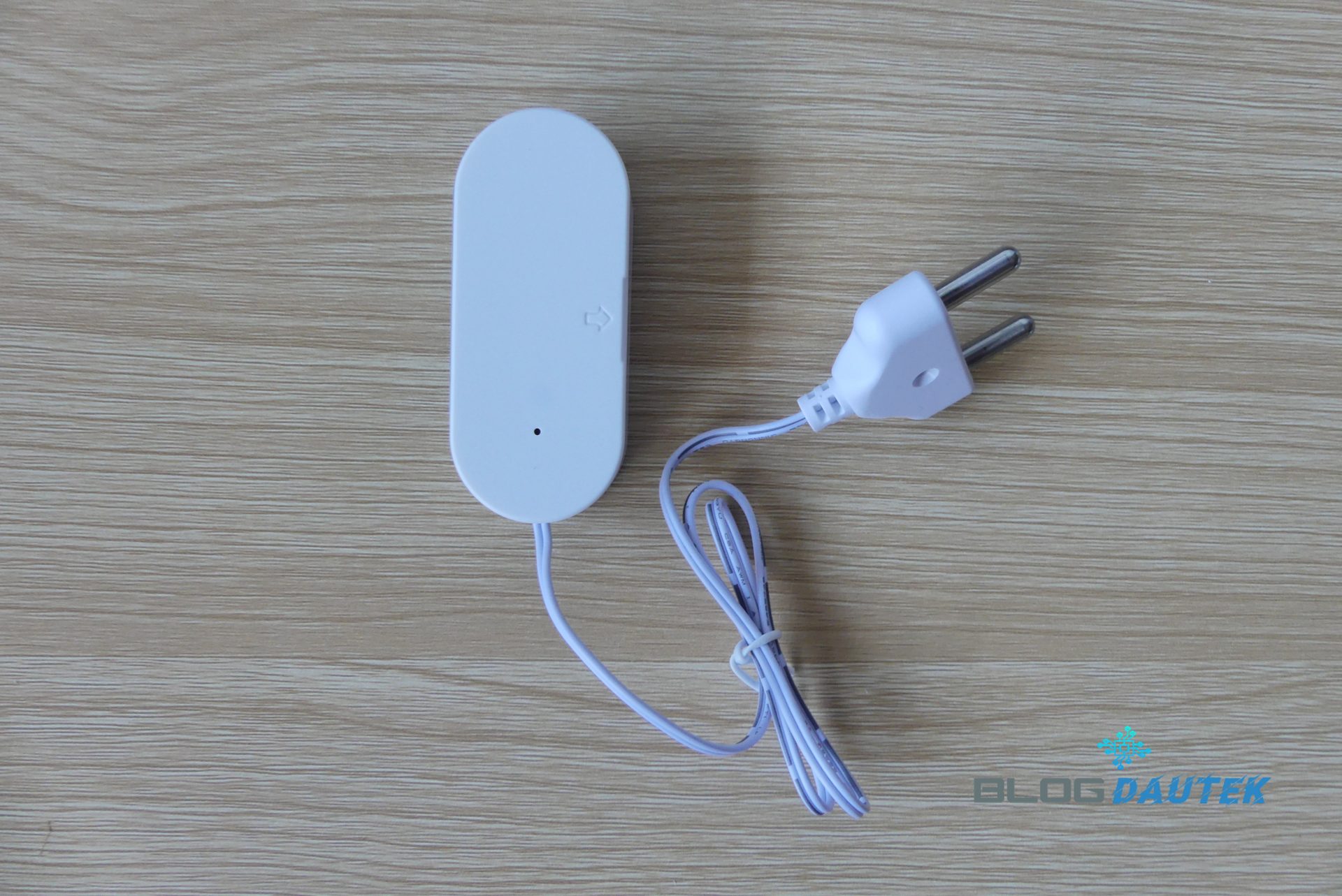 Le capteur arbore un boîtier plastique blanc compact et discret, avec une finition correcte pour un produit destiné à un usage technique. La sonde reliée par câble offre une flexibilité d’installation appréciable, permettant de placer le capteur en hauteur tout en surveillant le sol.