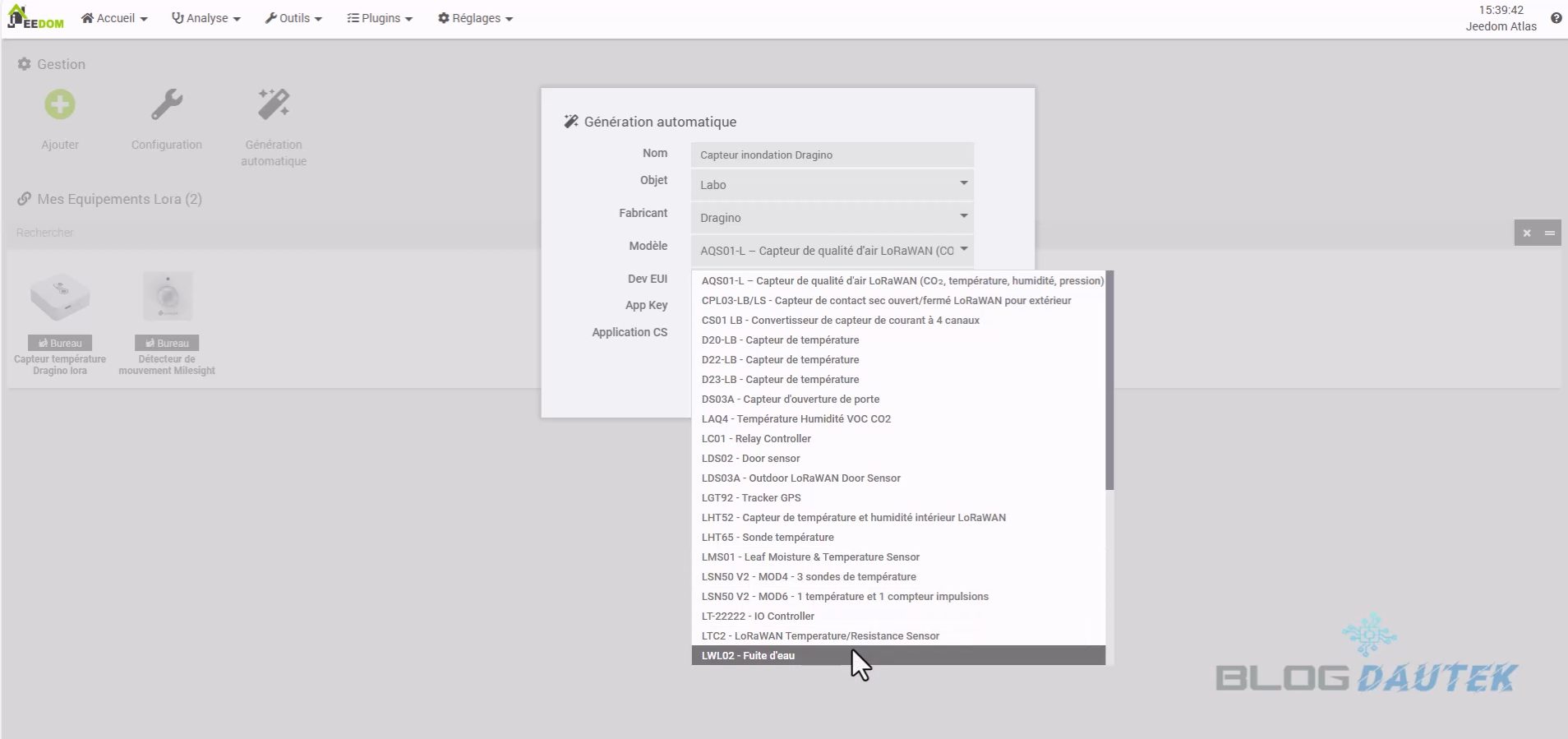 Pour l’intégrer, allez sur Plugins → Protocole domotique → Lora Payload.