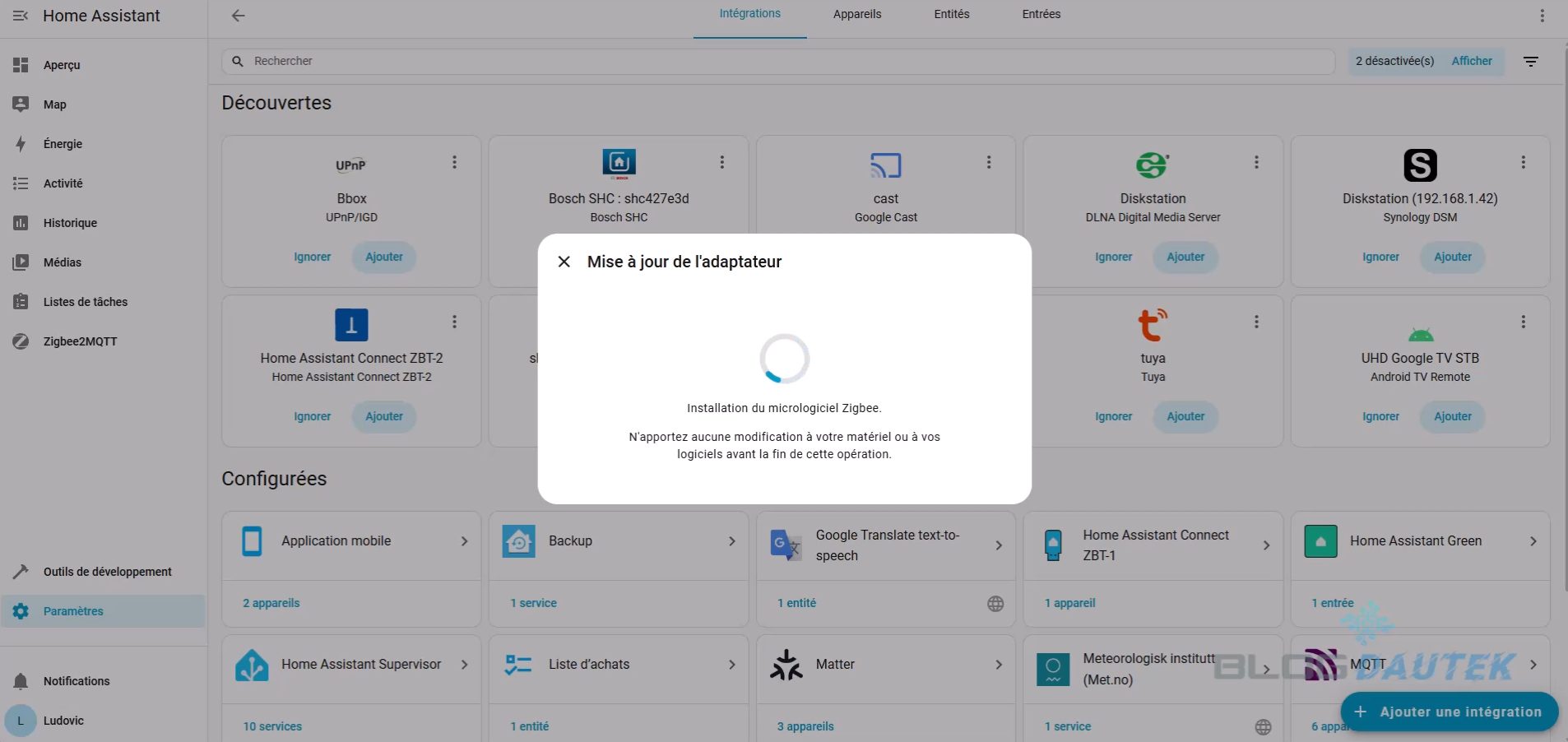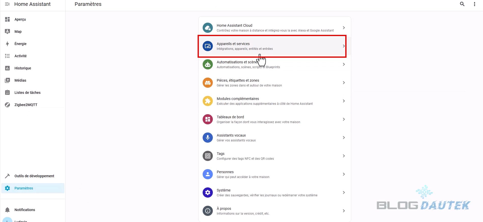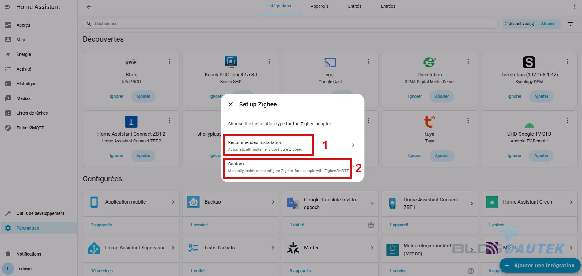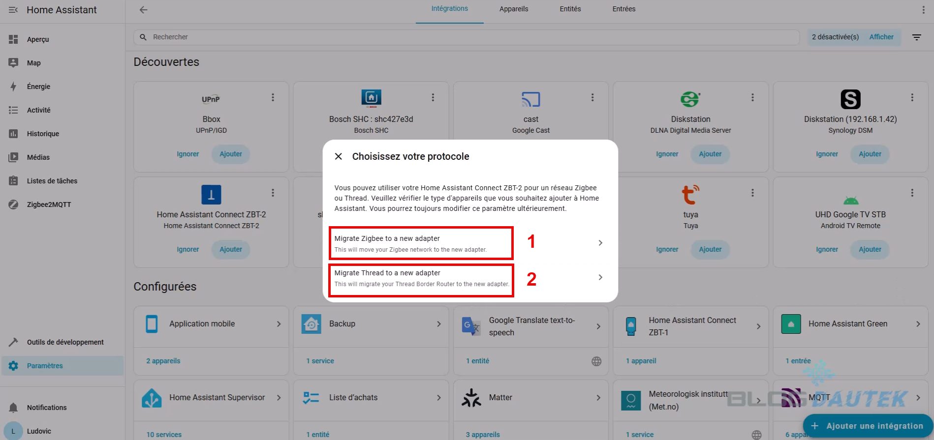 Pour l’intégrer, allez sur Paramètres puis Appareils et services. L’home assistant connect ZBT-2 est détecté, cliquez sur Ajouter.