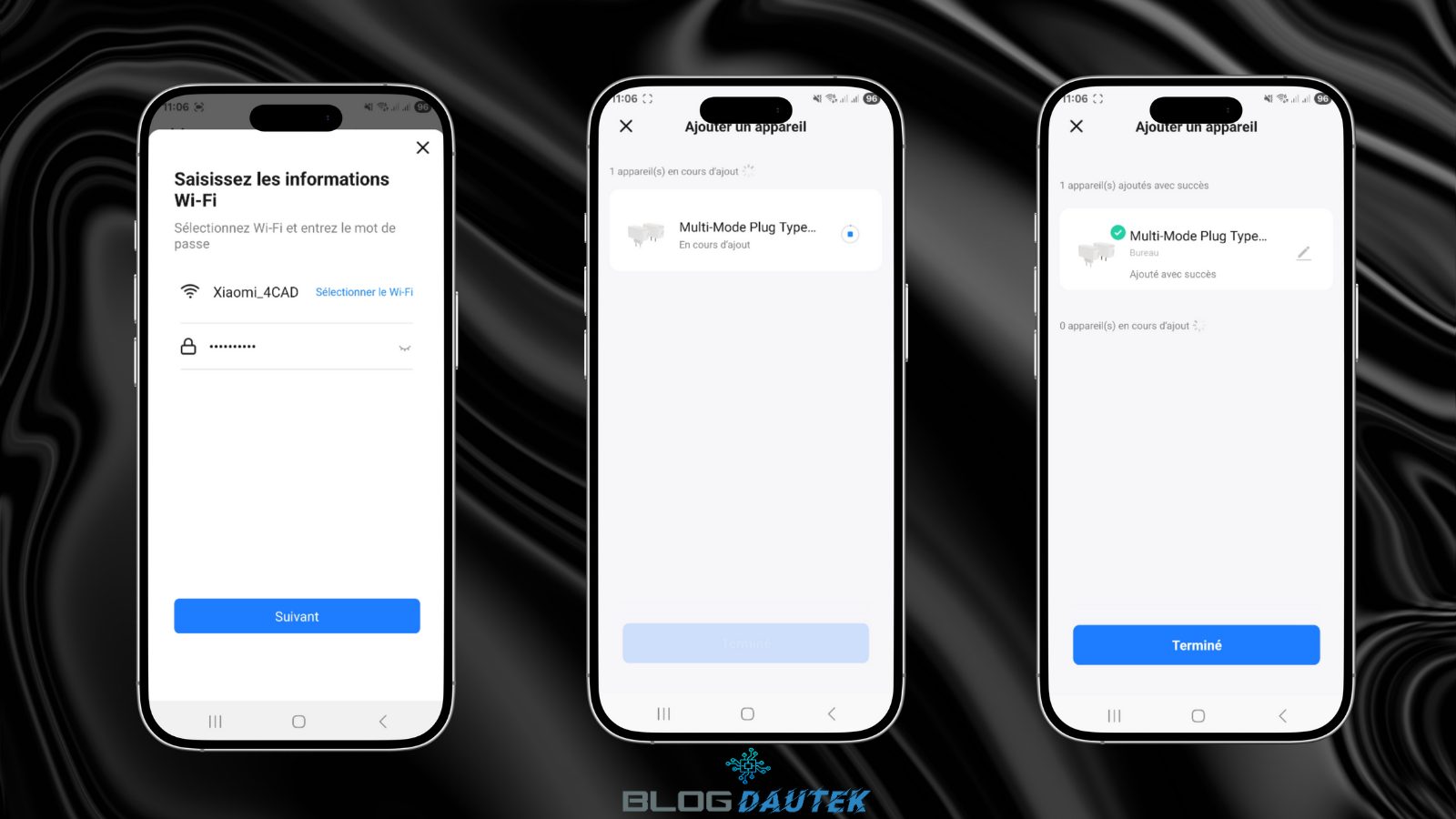 Renseignez vos informations Wi-Fi puis cliquez sur Suivant. L’intégration est terminé.