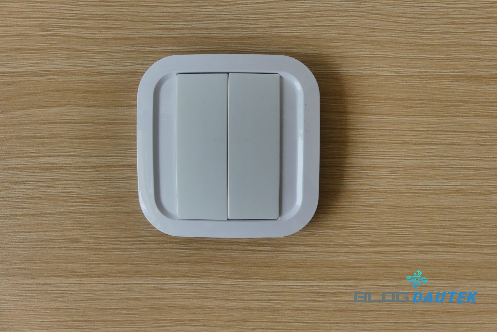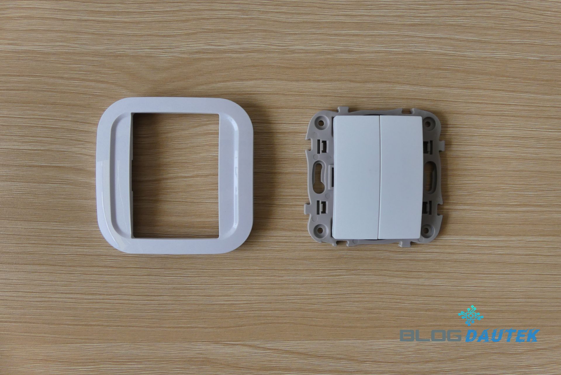 Vue de face de l’interrupteur qu’on peut déclipser pour le fixer au mur avec des vis (non fournies).