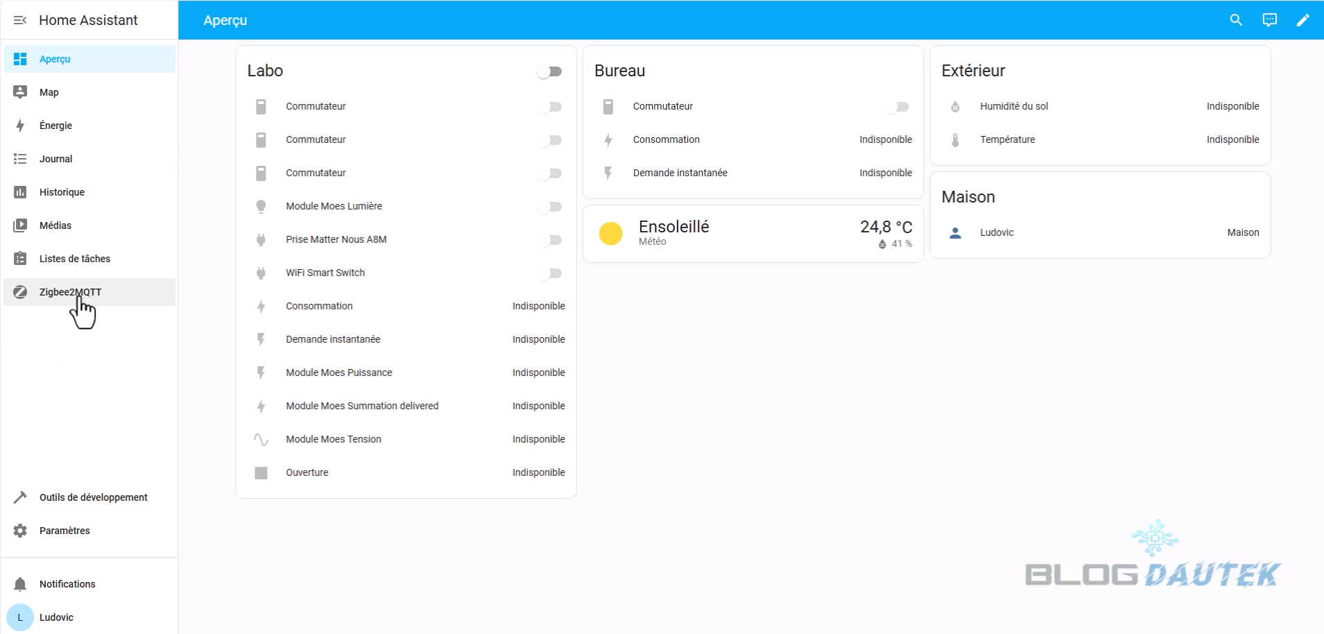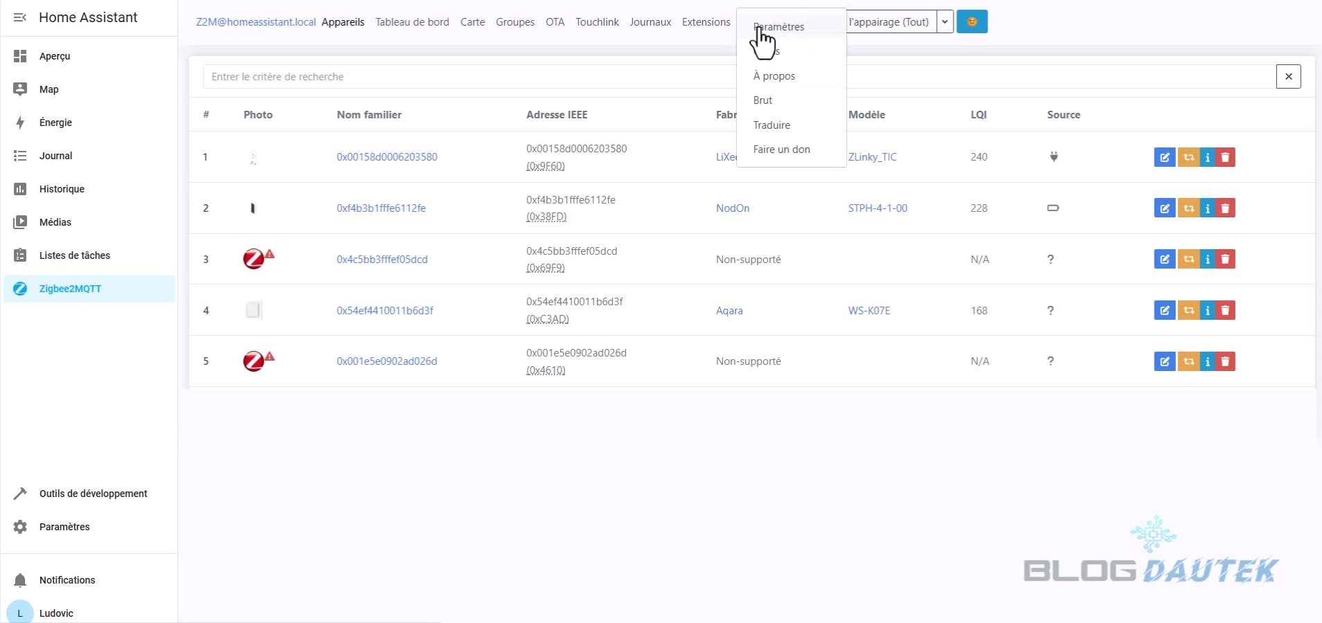Maintenat, sur Home Assistant, il faut également connaitre son canal. Pour cela, cliquez sur Zigbee2MQTT.