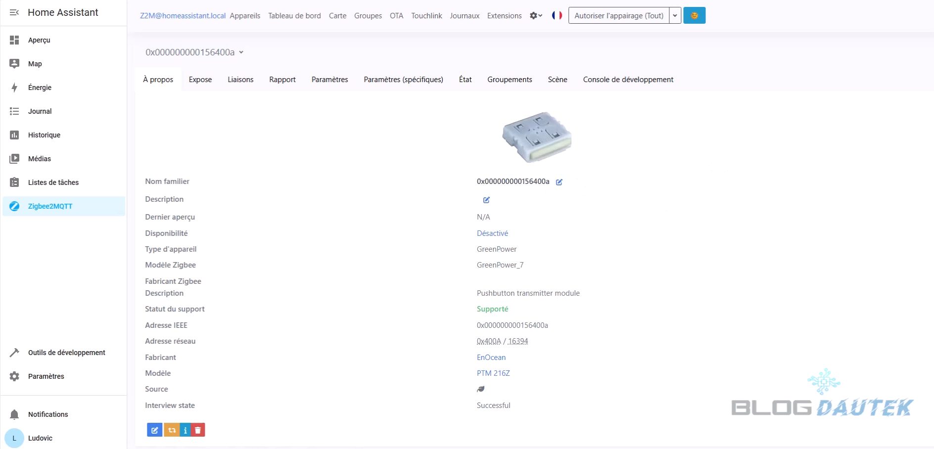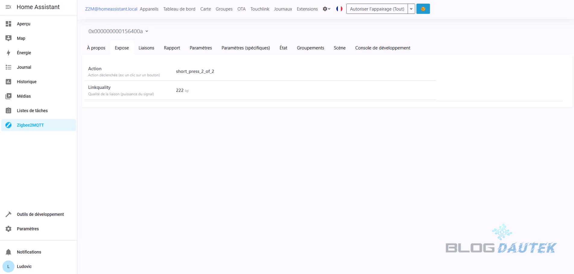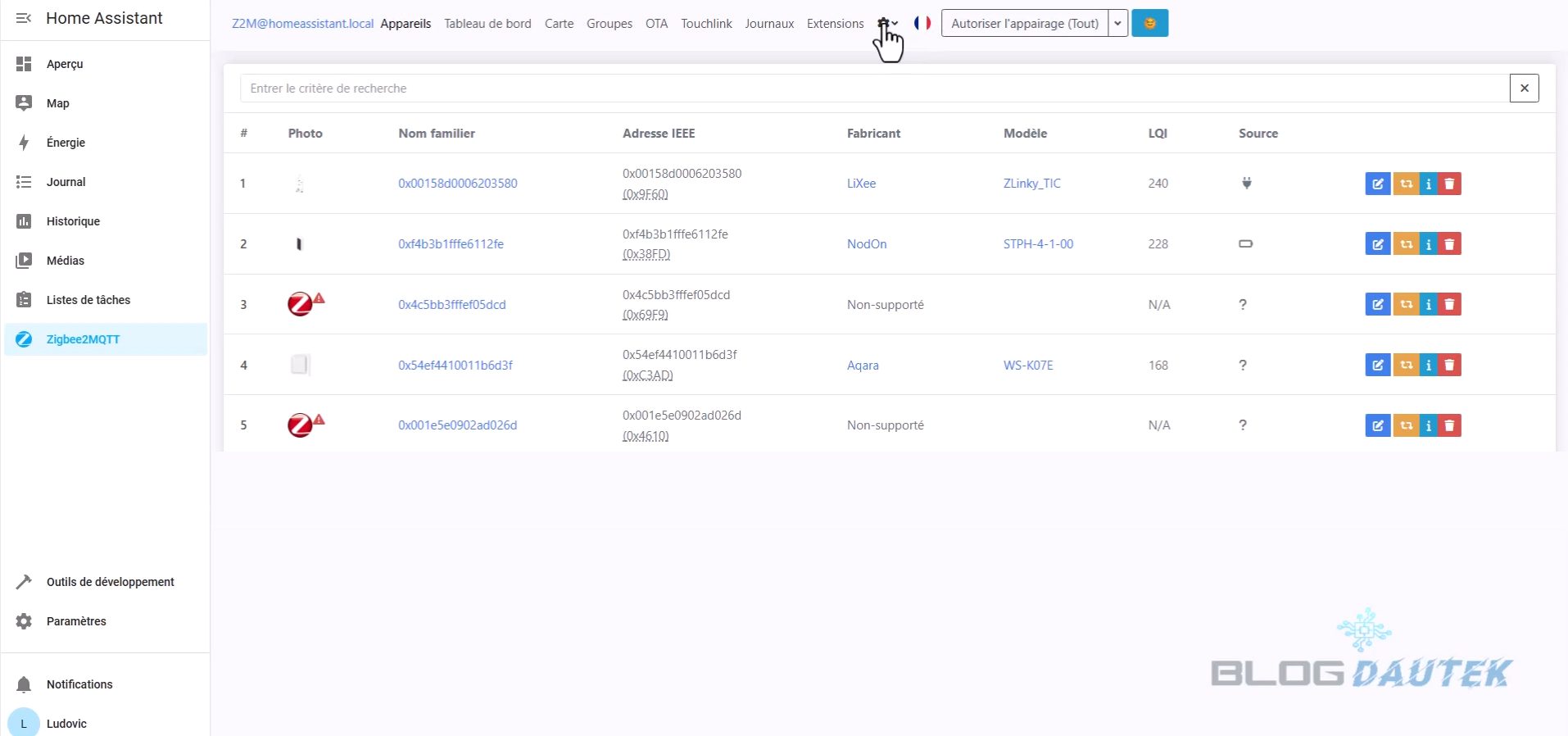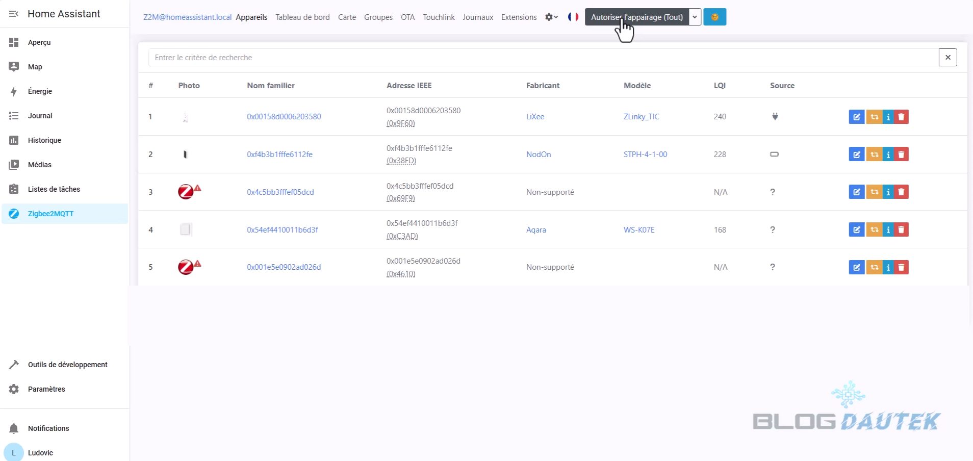 Revenez sur Zigbee2MQTT et cliquez sur Autoriser l’appairage.