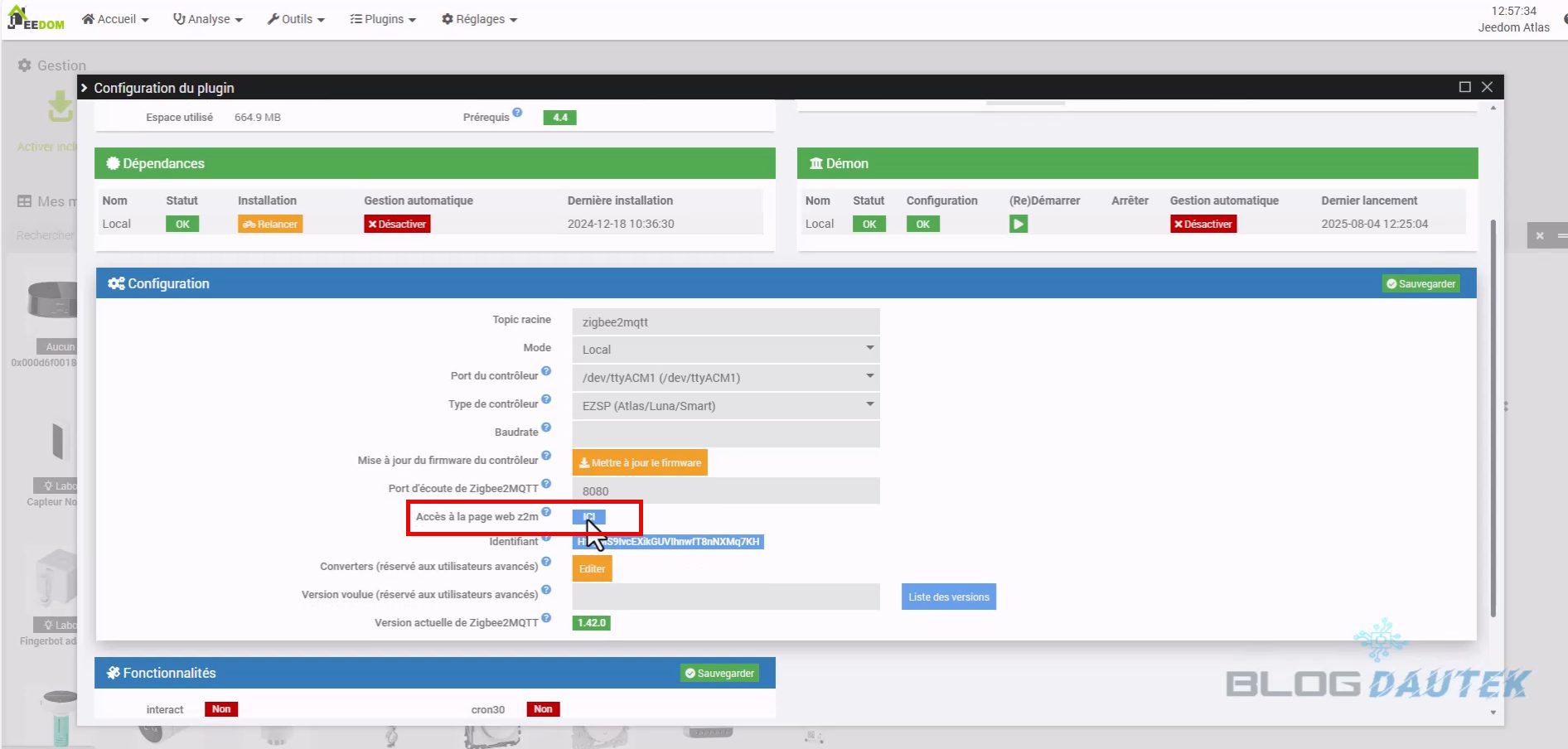 Ensuite, cliquez sur Configuration puis cliquez sur ici dans Accès à la page web z2m.