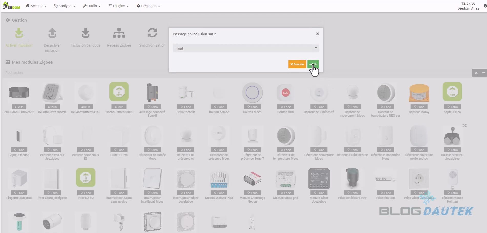 Maintenant, revenez sur Jeedom, quittez la configuration et cliquez sur Mode inclusion. Laisser tout et cliquez sur Ok. Puis, lancez l’appairage.