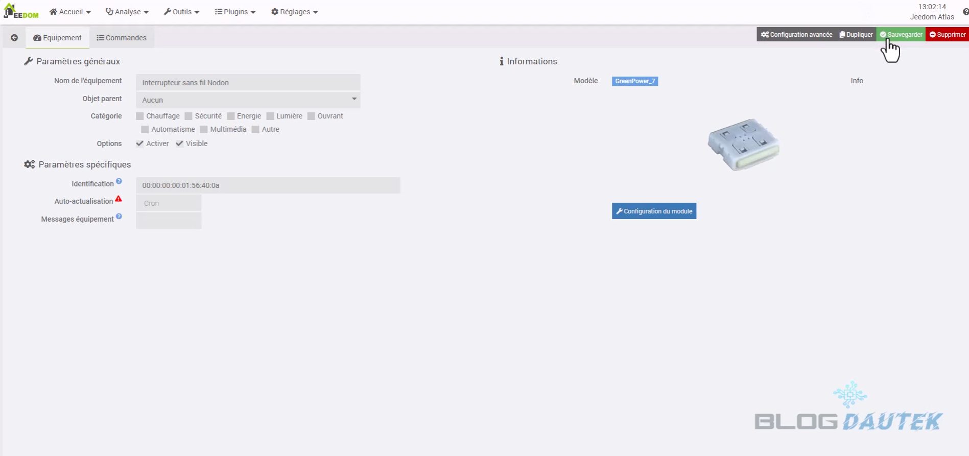 L’interrupteur est intégré. Donnez-lui un nom et attribuez une pièce. Ensuite, dans l’onglet commandes, vous verrez celles qui sont disponibles.