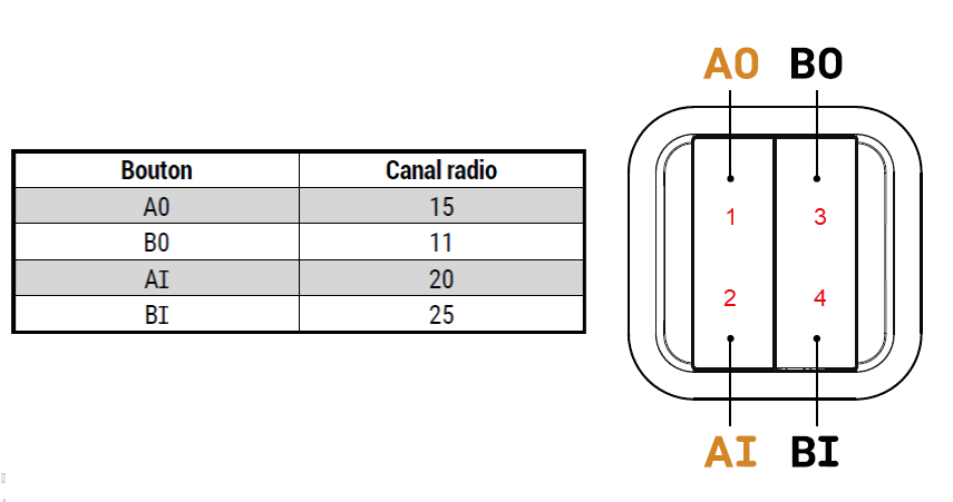L’interrupteur est composé de 4 touches et chacune d’elle correspond à un canal radio pour l’appairage, où il faudra appuyer 7 secondes sur la touche en question. On va voir sur Jeedom et Home Assistant, quel canal est utlisé pour savoir quelle touche appuyer.