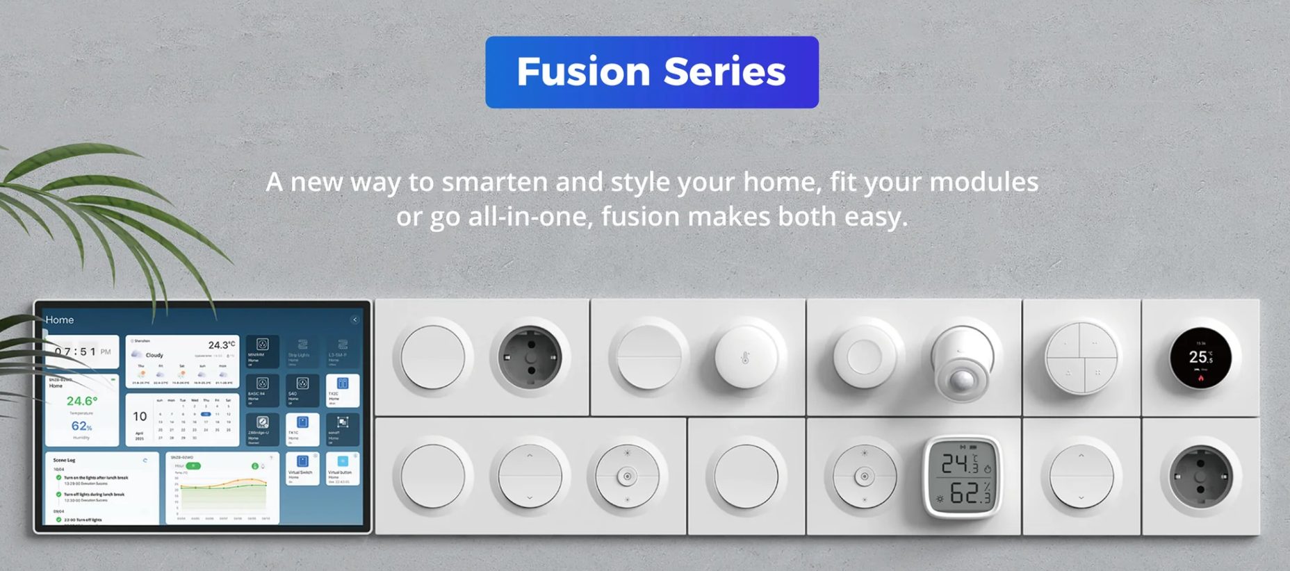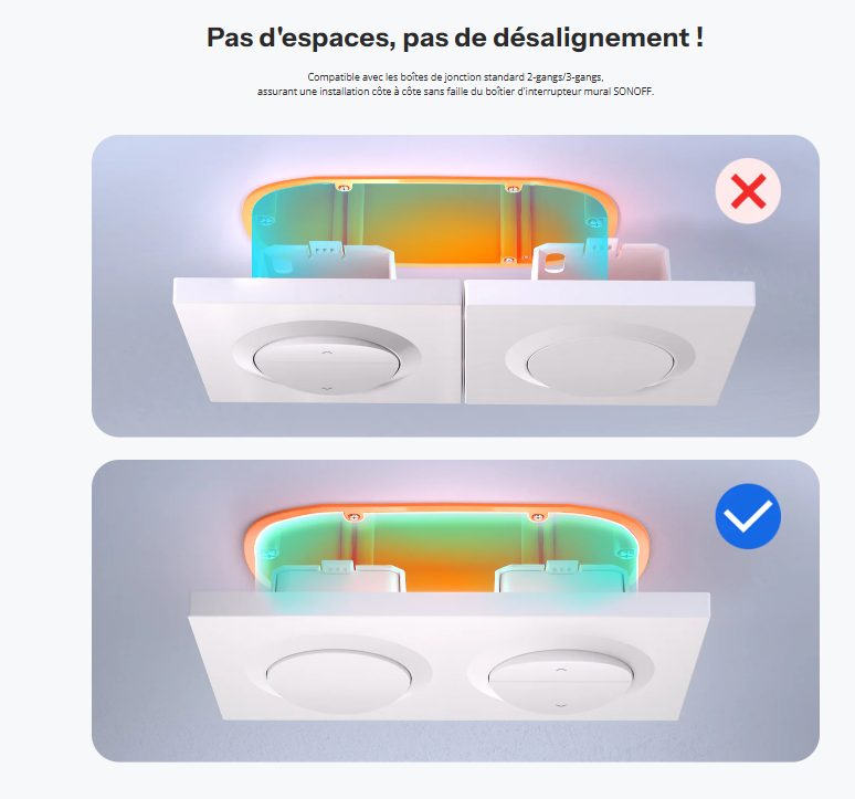 L’interrupteur Sonoff de la collection Fusion cible manifestement les utilisateurs désireux de mettre à jour leurs interrupteurs muraux actuels sans un remplacement complet, tout en bénéficiant des protocoles les plus récents tels que Zigbee, Wi-Fi et Matter. Cette gamme comprend des interrupteurs muraux intelligents et des châssis modulaires pouvant recevoir divers micro-modules Sonoff (MINIR4, MINIR4M, ZBMINIR2, ZBMINIL2), mais également des interrupteurs pour volets roulants, ce qui en fait un choix parfait tant pour une rénovation domotique intégrale que pour une modernisation progressive pièce par pièce. En effet, la gamme Fusion offre la possibilité de convertir un système d’éclairage traditionnel en un éclairage connecté contrôlable via une application, tout en préservant un format adapté aux boîtiers standards EU.