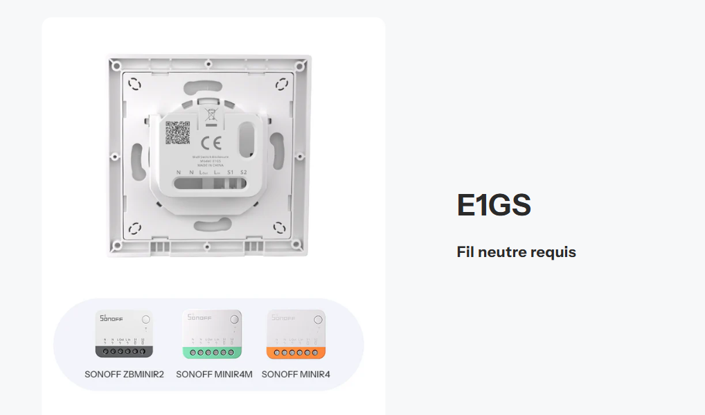 Comme je le disais, c’est complètement modulable, donc vous pouvez prendre le boitier de l’interrupteur et choisir parmi les modules compatible ci dessous pour la version avec le neutre requis.
