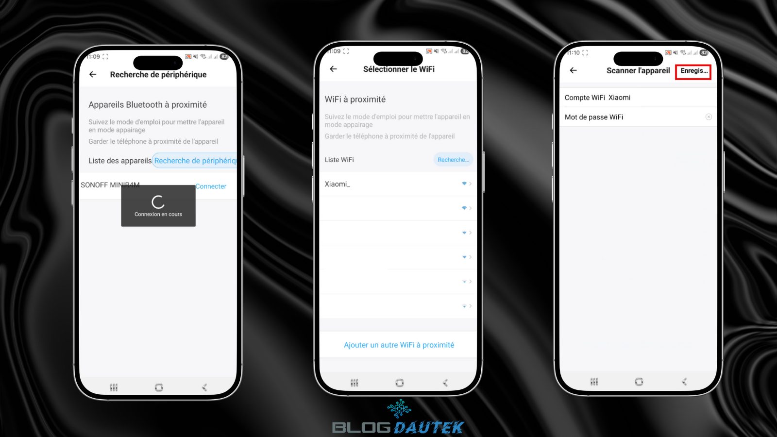 Maintenant, la connexion va se faire et sélectionnez votre réseau Wi-Fi et votre mot de passe, puis, cliquez sur Enregistrer.