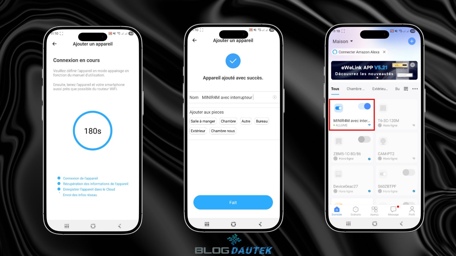 Changez le nom et sélectionnez une pièce et cliquez sur Fait. Vous pouvez directement actionner l’interrupteur avec le bouton.