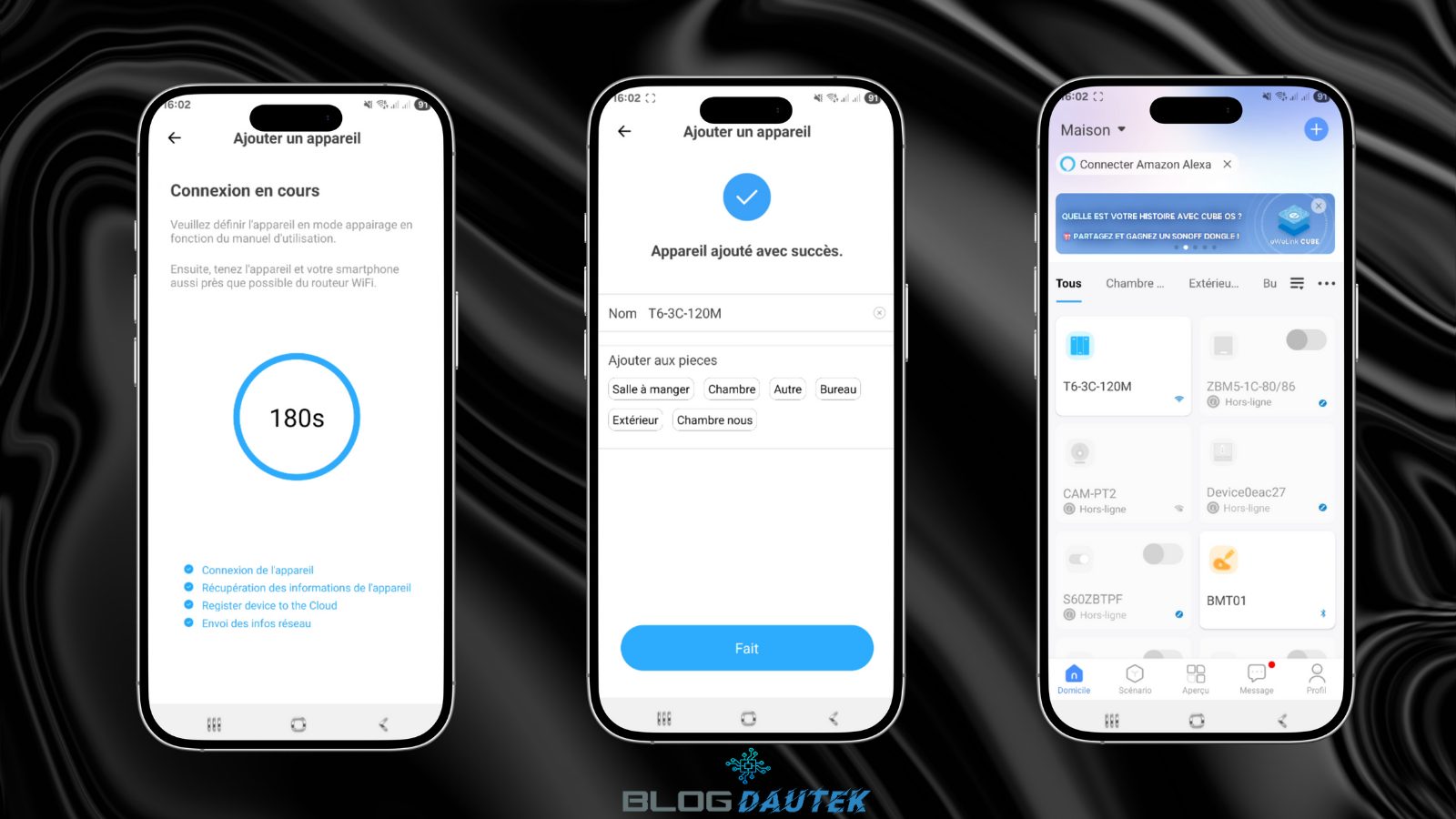 Puis, changez le nom et sélectionnez une pièce et cliquez sur Fait. Vous êtes redirigé sur la page d’accueil en voyant juste l’interrupteur sans pouvoir l’actionner. Cliquez dessus pour s’en servir et pour les réglages.