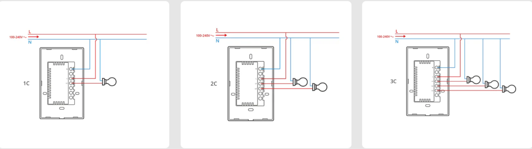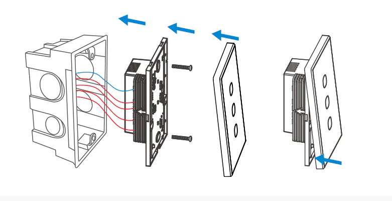 Branchez les câbles sur le bornier selon le modèle que vous possédez, fixez la partie arrière et reclipsez l’interrupteur.