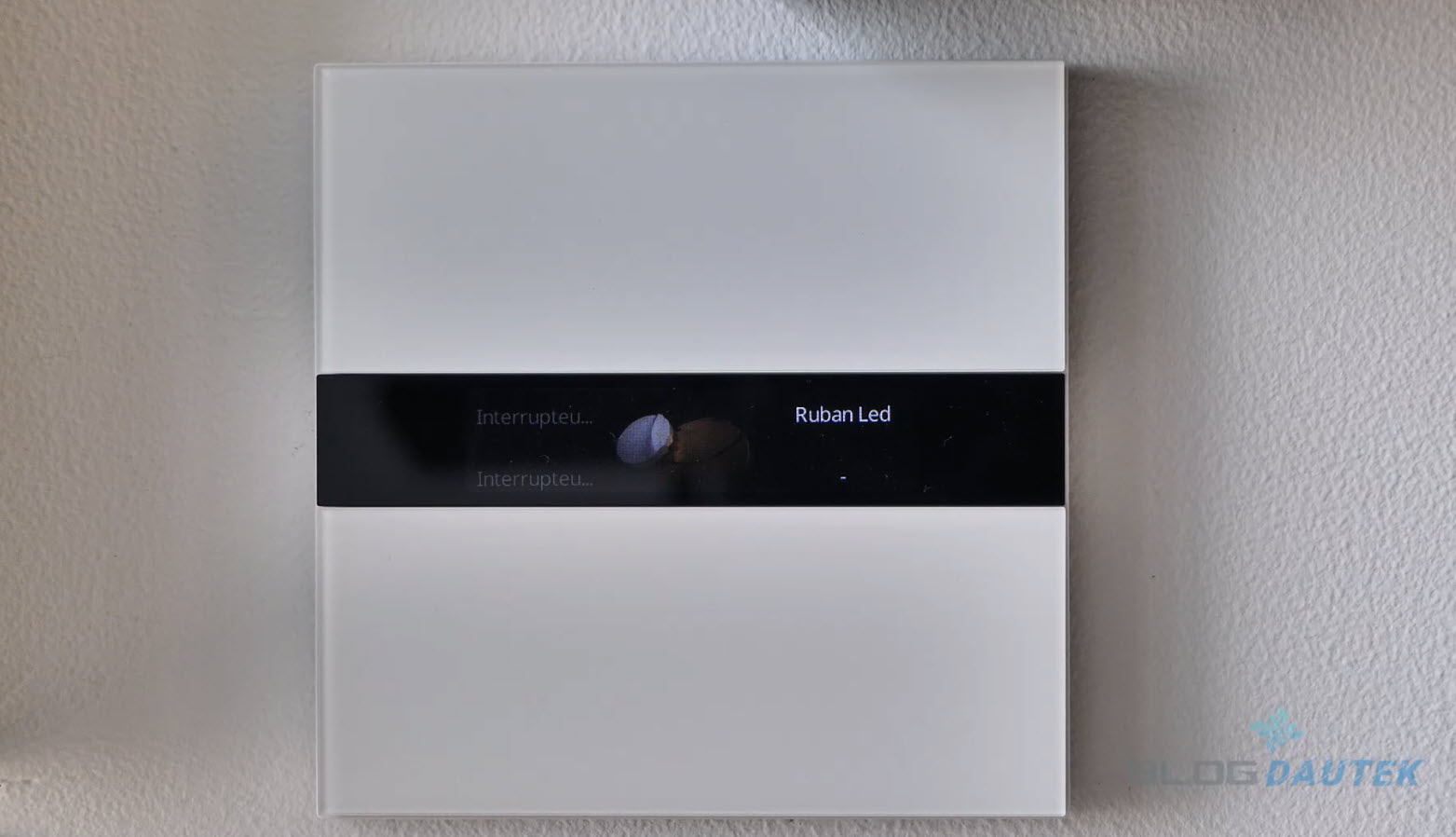 Ensuite, sur l’écran, vous aves à gauche en haut et en bas ppur les interrupteurs physiques et à droite, également, en haut et en bas, pour des interrupteurs virtuels.