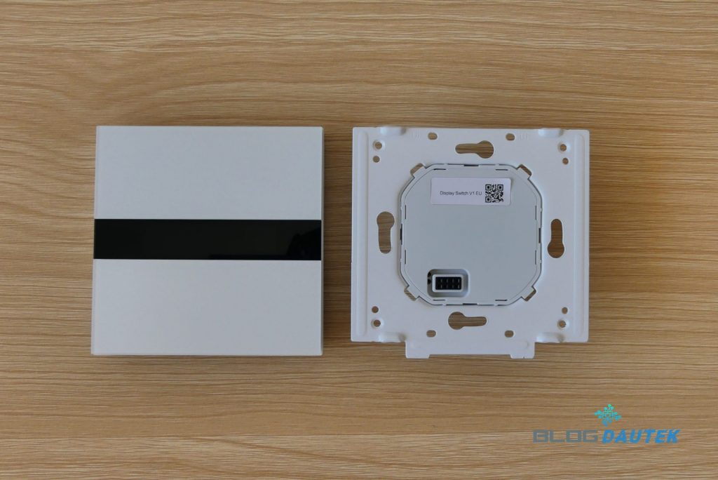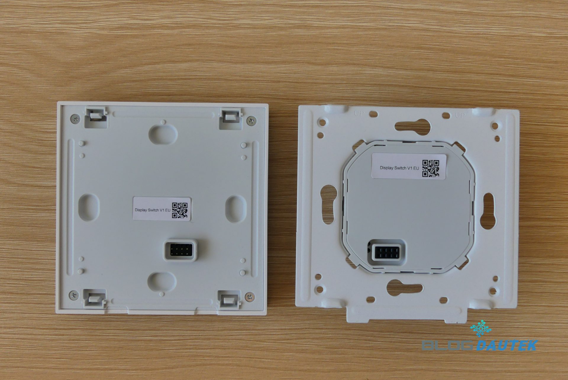 Les 2 parties dissociées pour pouvoir fixer la partie droite au mur à la place de l’ancien interrupteur.