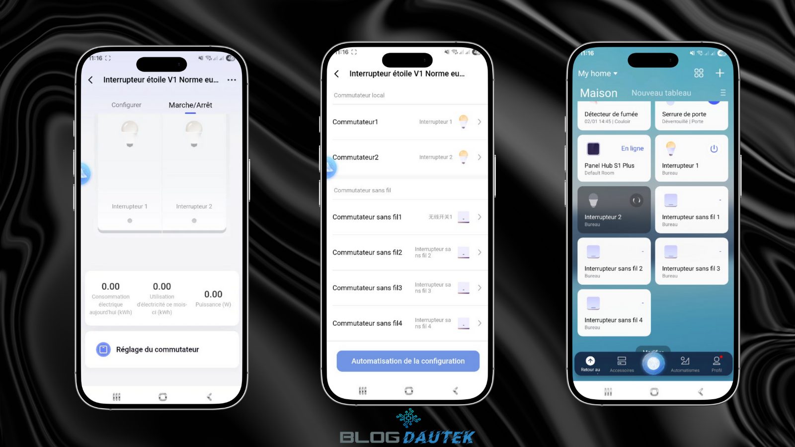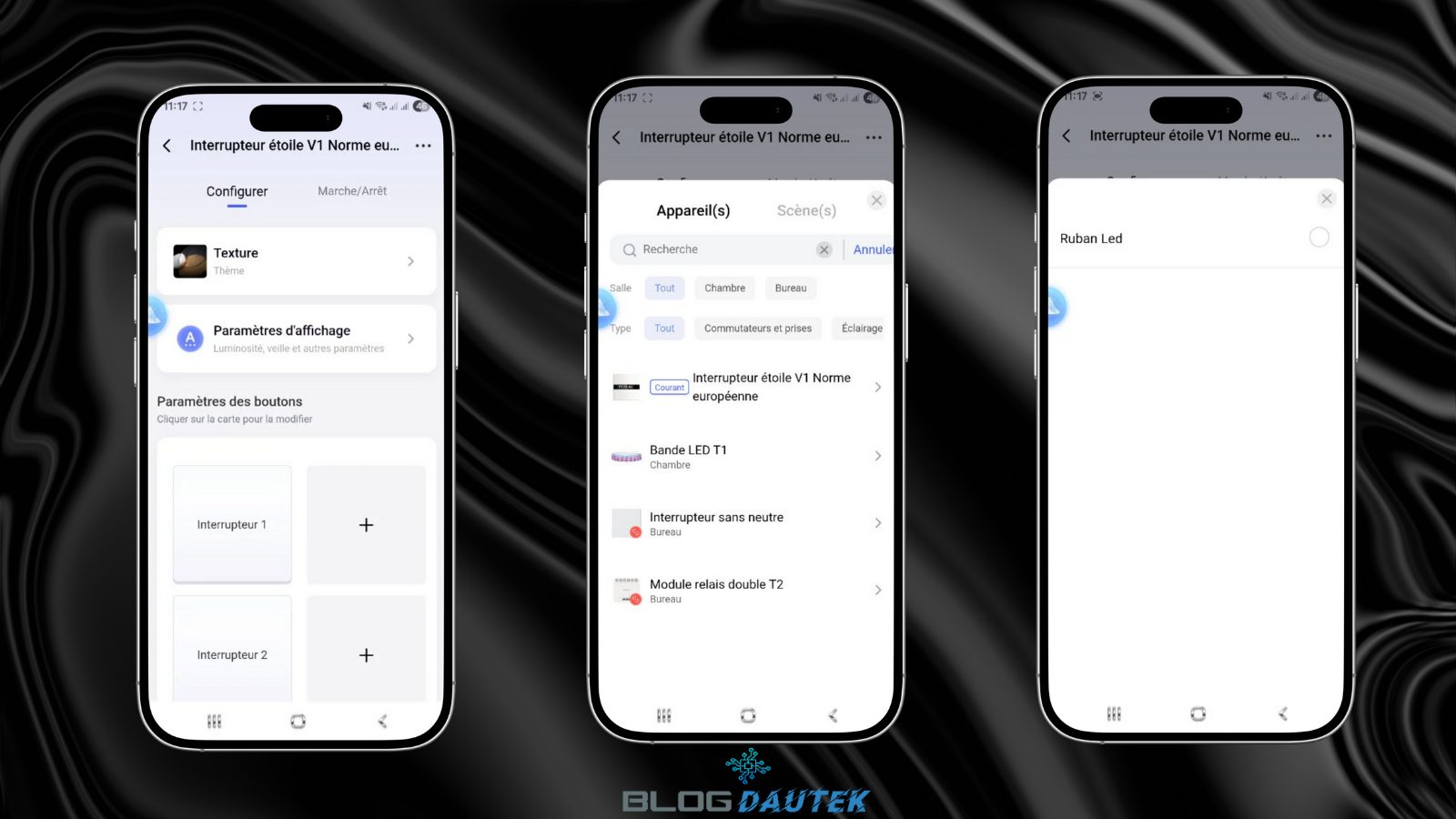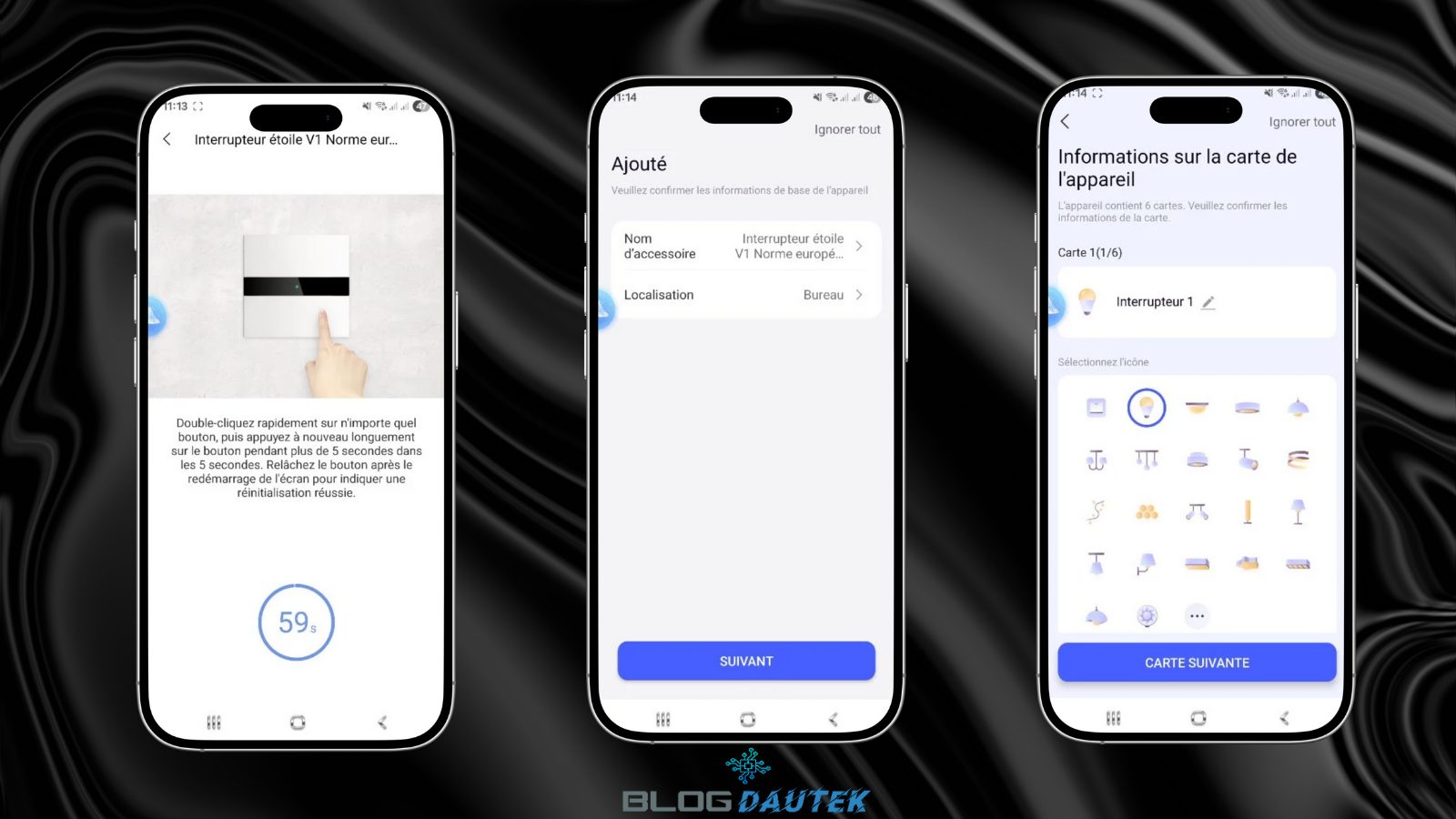 Ensuite, lancez l’appairage comme indiqué et changer le nom et la pièce. Mettez les informations voulues sur les cartes des interrupteurs physiques.