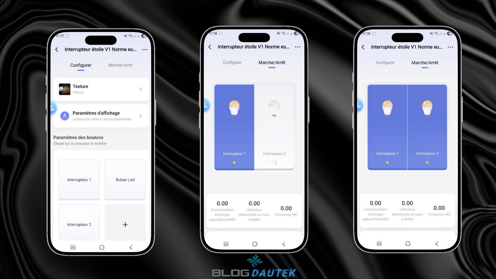 Voici le thème Azuré sur l’écran de l’interrupteur Zigbee.