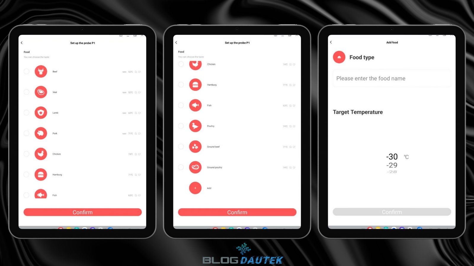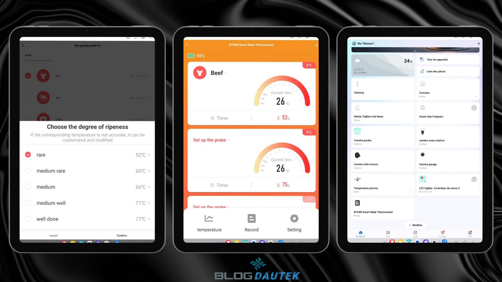 Enfin, sélectionnez votre aliment comme le boeuf et choisissez la température de cuisson voulue. Vous voyez, alors, la viande sélectionnée ainsi que la température de cuisson.
