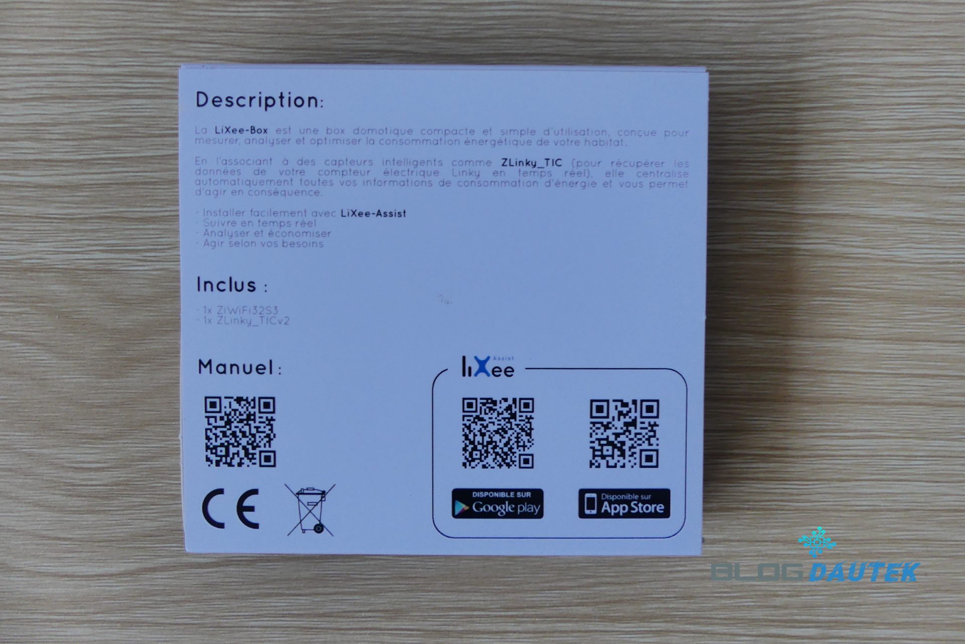 La Lixee Box arrive dans un emballage compact et sobre, à l’image de la philosophie du produit : efficacité et simplicité. Avec, au dos, les QR codes pur le manuel et l’application.