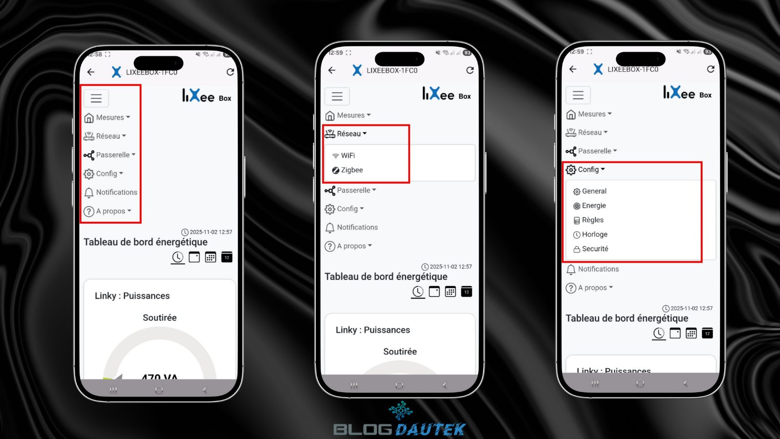 La Lixee Box est un compteur d’énergie connecté conçu pour les utilisateurs souhaitant suivre leur consommation électrique en temps réel. Développée par Lixee, une marque française spécialisée dans les solutions de monitoring énergétique, cette box se connecte directement aux compteurs Linky pour récupérer les données de consommation et les transmettre à l’application dédiée. La Lixee Box d’être en local et complètement indépendant si on n’a pas de box domotique comme Home Assistant, Jeedom ou tout autre système domotique. Elle permet de visualiser en direct sa consommation, d’identifier les appareils énergivores.