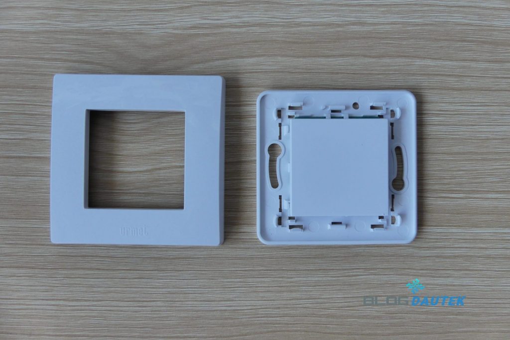 Vue de face et de dos, avec au dos les trous pour le fixer avec les vis pour une boite de cloison.