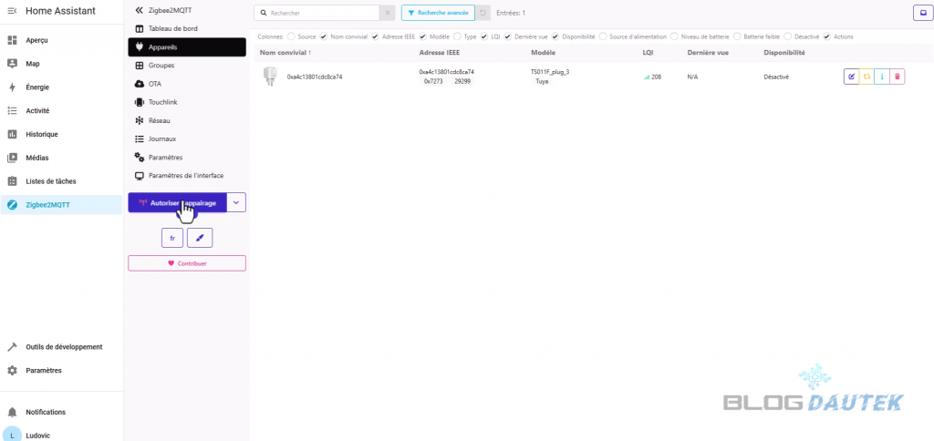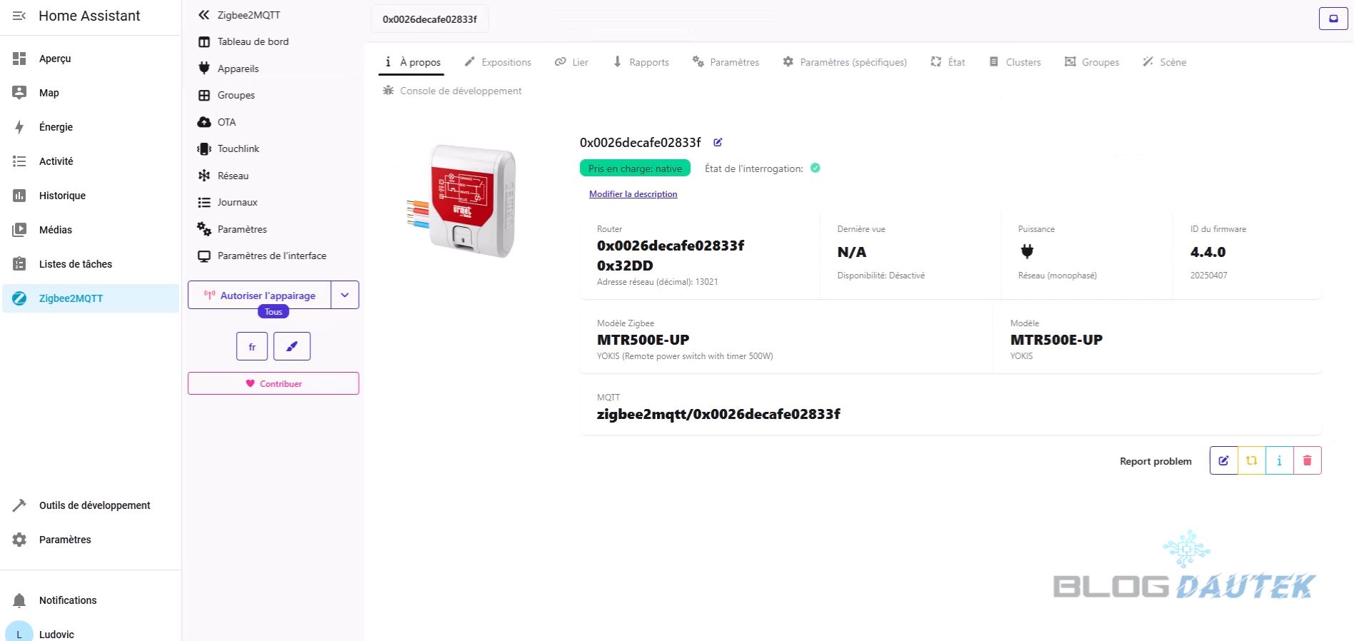 Il est intégré à Home Assistant et, en cliquant dessus, vous accédez directement aux détails.
