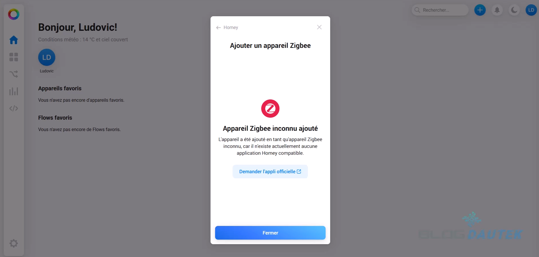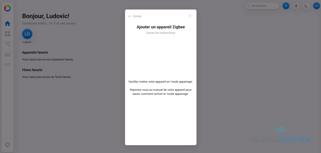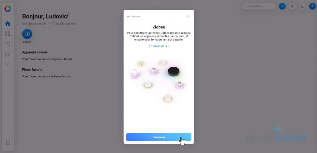 + → Nouvel appareil → Zigbee → Connecter → Continuer