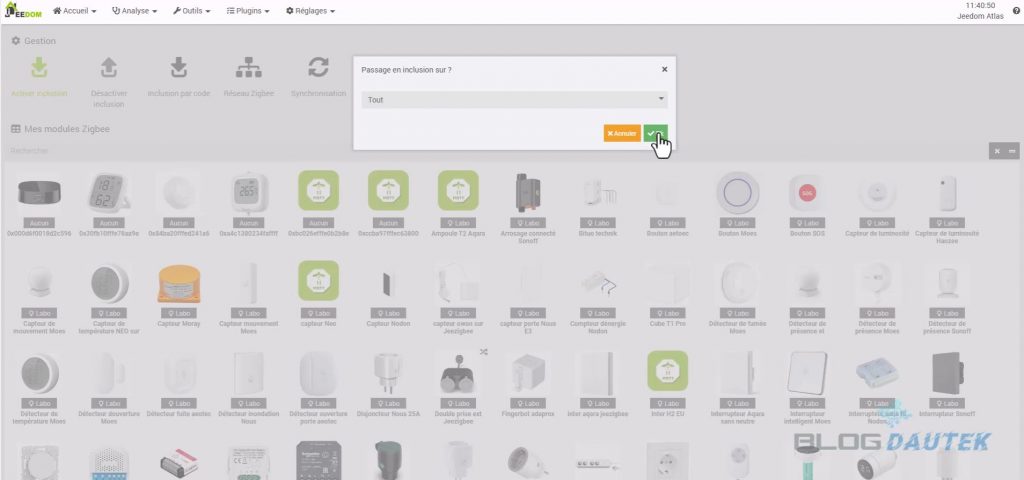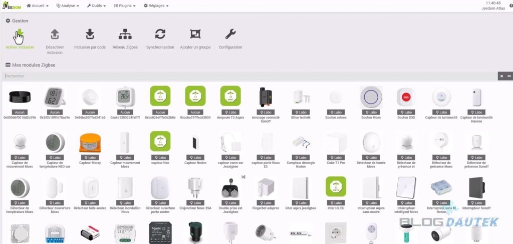 Pour inclure un périphérique, il faut aller sur le plugin JeeZigbee en allant dans :