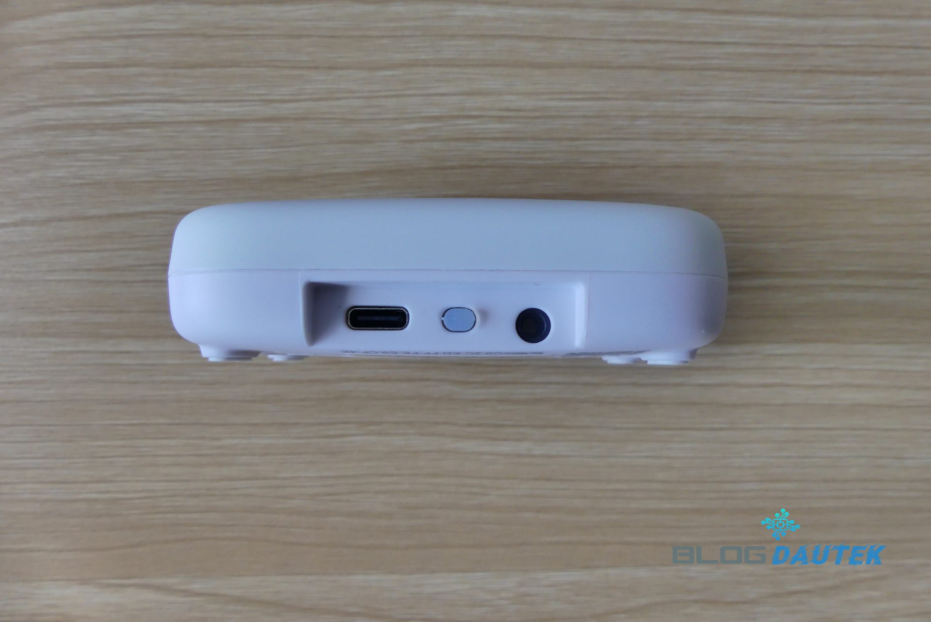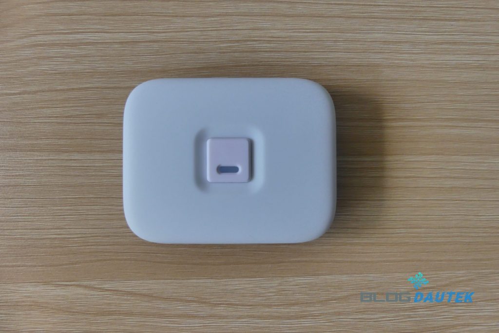 Face arrière, avec le port USB-C pour l’alimentation et au milieu le bouton pour l’appairage.