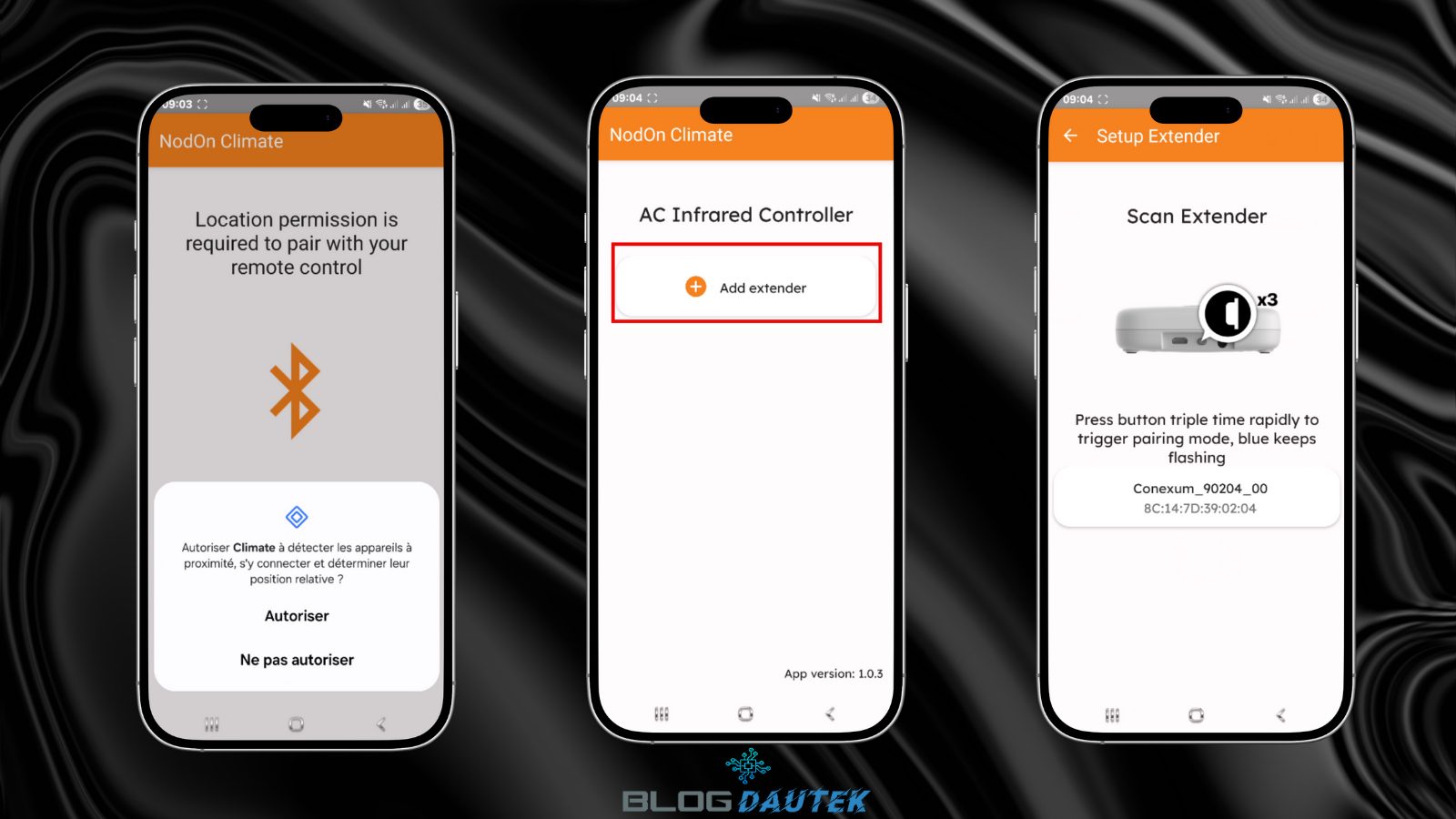 Ensuite, cliquez sur Autorisez. Puis, nous allons ajouter le contrôleur, pour cela cliquez sur Add extender. Appuyez 3 fois sur le bouton derrière pour l’appairage.