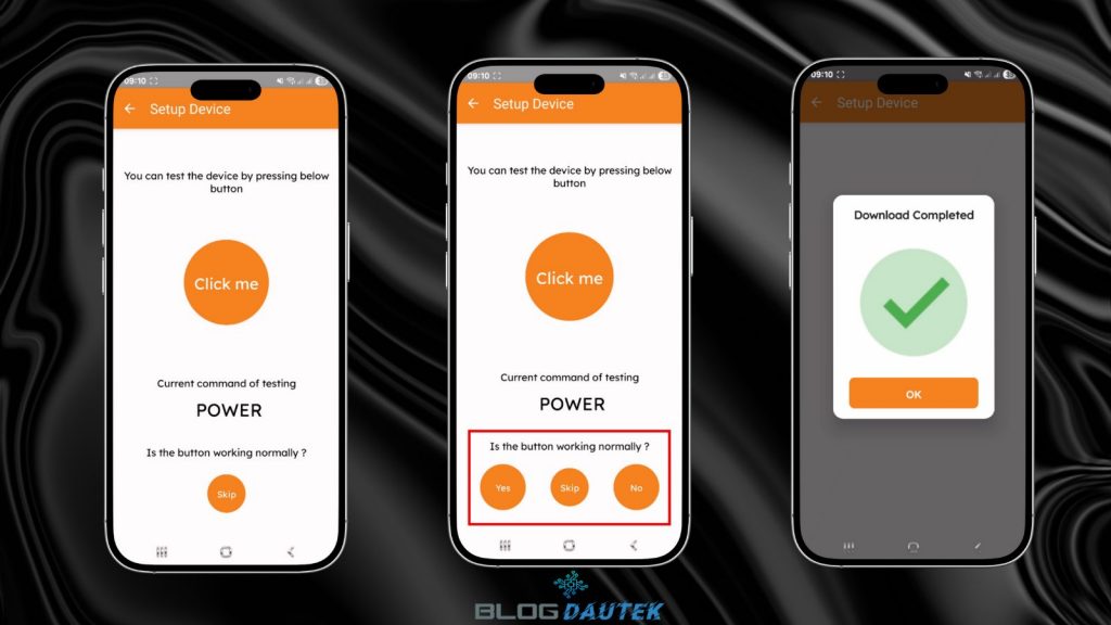 Ensuite, comme pour les climatisations, il faut faire des tests, appuyez sur Click me et si sa fonctionne, cliquez sur Yes et c’est bon sinon cliquez sur No et faudra apprendre le code grâce à la télécommande d’origine de votre appareil.