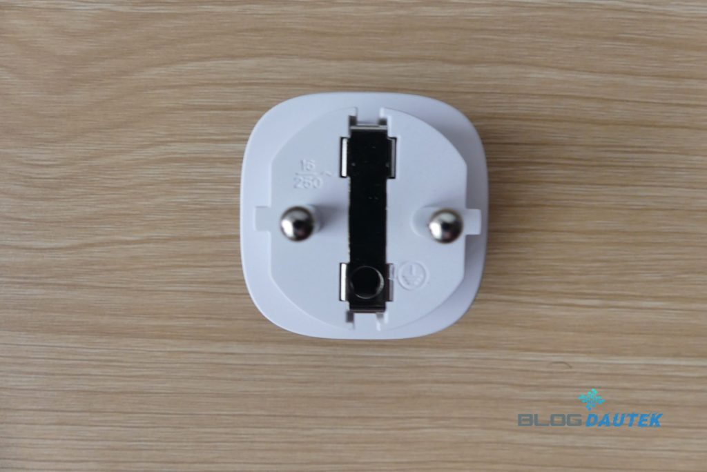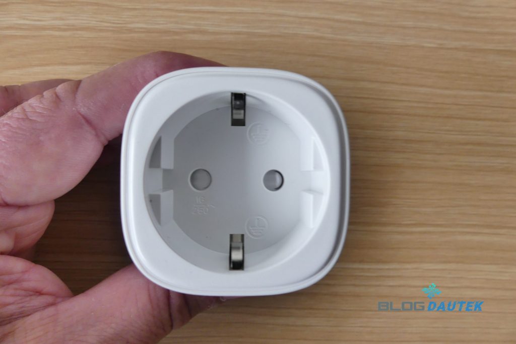 Le boîtier blanc arbore une finition mate de qualité avec un bouton physique sur le côté permettant un contrôle manuel. La conception paraît solide avec des matériaux résistants, et la LED d’état intégrée reste discrète.