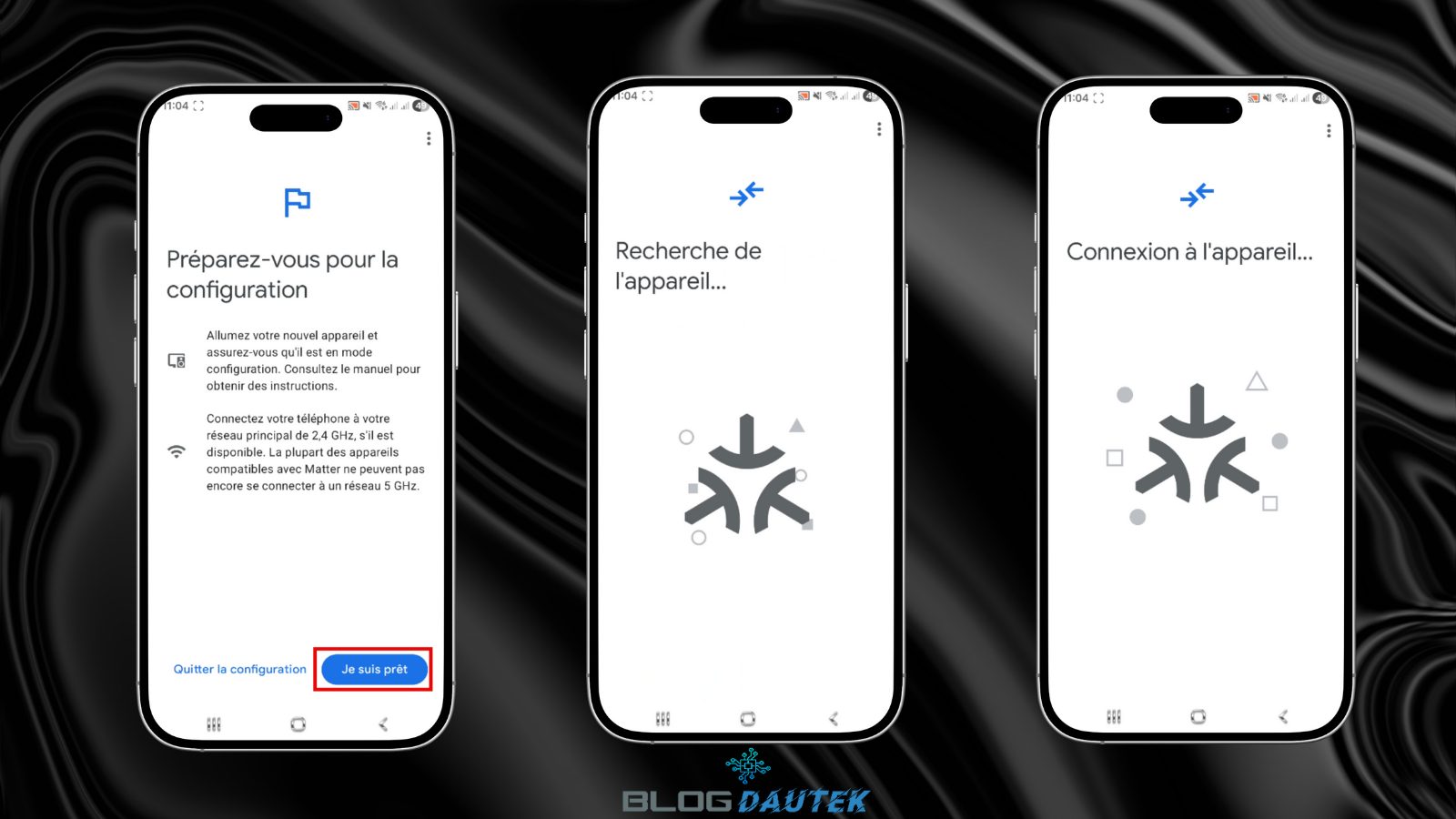 Ensuite, brancgez la prise et cliquez sur Ensuite, puis, lancez l’appairage si le voyant ne clignote pas sur vert et orange. Sélectionnez la prise version Matter.