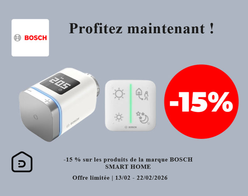Pendant une durée limitée, profitez de 15 % de remise sur une sélection de marques reconnues pour leur fiabilité et leur compatibilité avec les principaux écosystèmes domotiques :