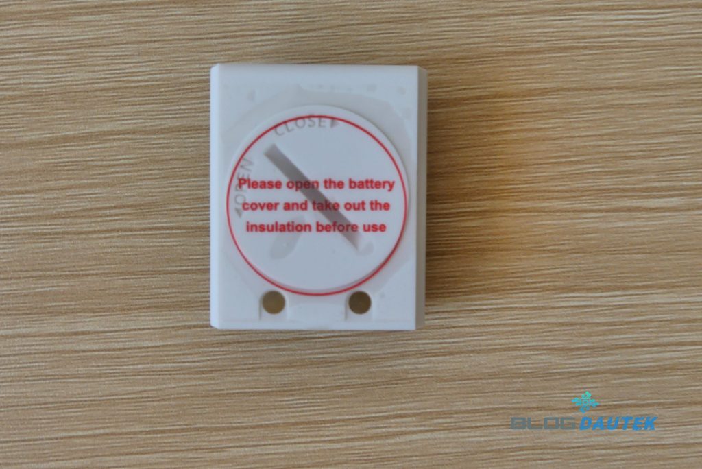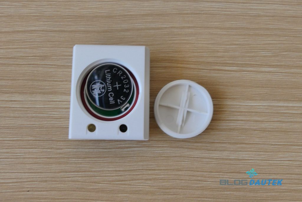 Il est fourni avec un QR code pour scanner la notice, la pile CR2032 et un scotch double face pour la fixation.