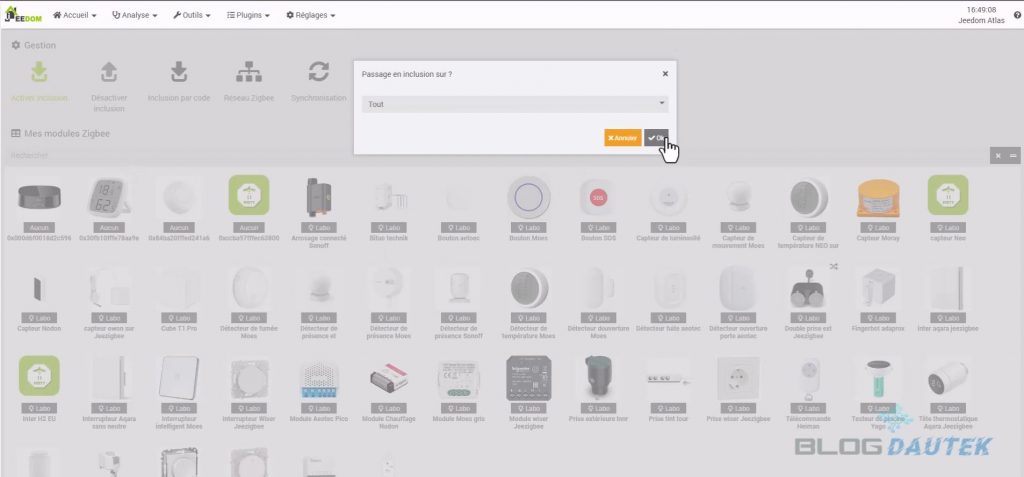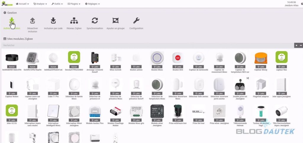 Pour inclure un périphérique, il faut aller sur le plugin JeeZigbee en allant dans :