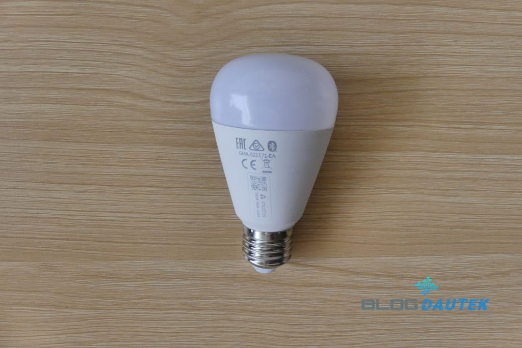 Vue de face de l’ampoule, avec le QR code pour l’intégration avec Matter.