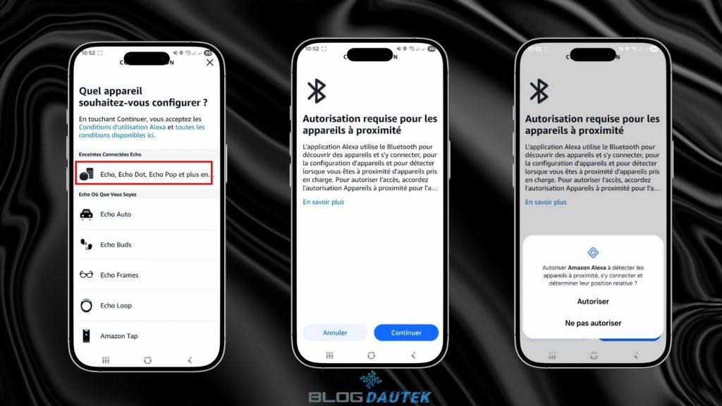 Cliquez sur Echo et cliquez sur Continuer pour autoriser le Bluetooth et cliquez sur Autoriser.