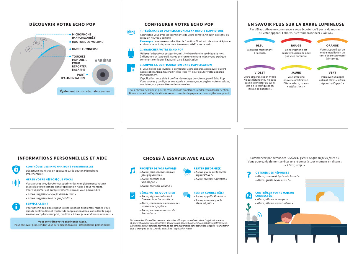 Notice de l’Echo Pop, notamment savoir à quoi correspond les différentes couleurs de le barre lumineuse.
