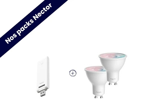 - 2 ampoules ou 2 spots connectés Aqara (au choix : E27 ou GU10, blanc ou couleurs)