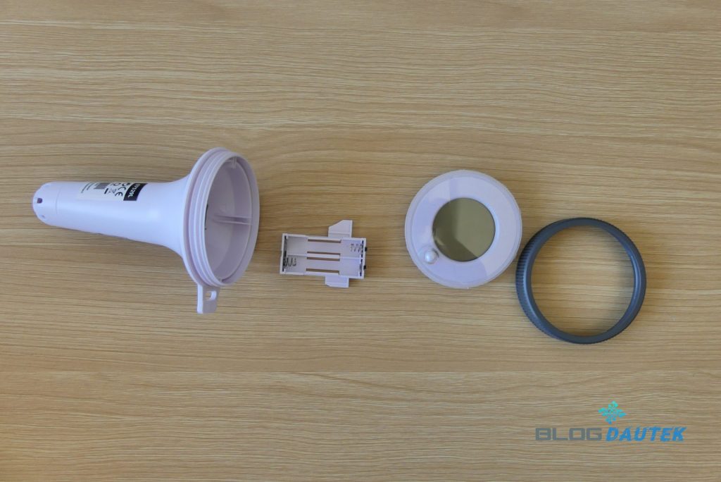 La sonde est fournie avec un panneau d’affichage et son câble USB mais pas de bloc secteur, 2 capteurs température et de l’humidité intérieur, une notice mais pas en français et une petite corde pour accrocher la sonde.